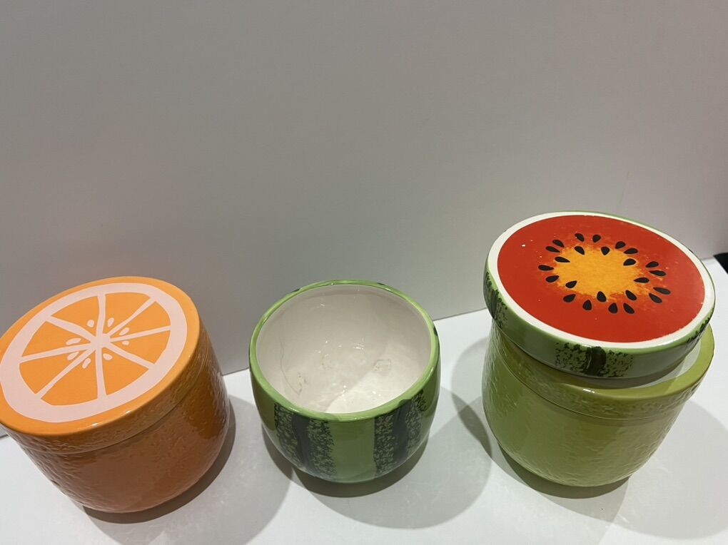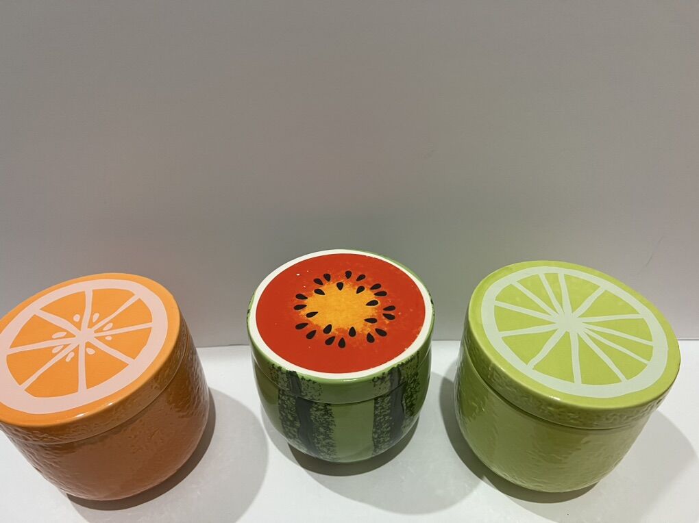 VenmoColorful fruit-shaped ceramic canister with a lime design, often used for storage or home decor. Material: Crafted from durable ceramic or dolomite. Design: Features a hand-glazed finish in bright green with a white lime slice design on the lid. Usage: Versatile for storing food items, pens, pencils, or simply as a decorative accent to add color to a space. Never used.