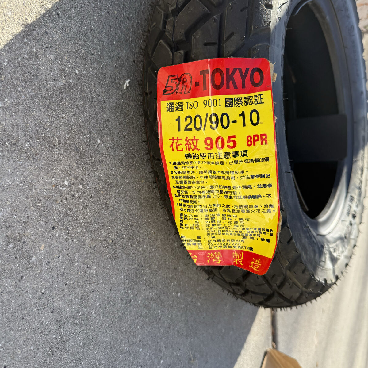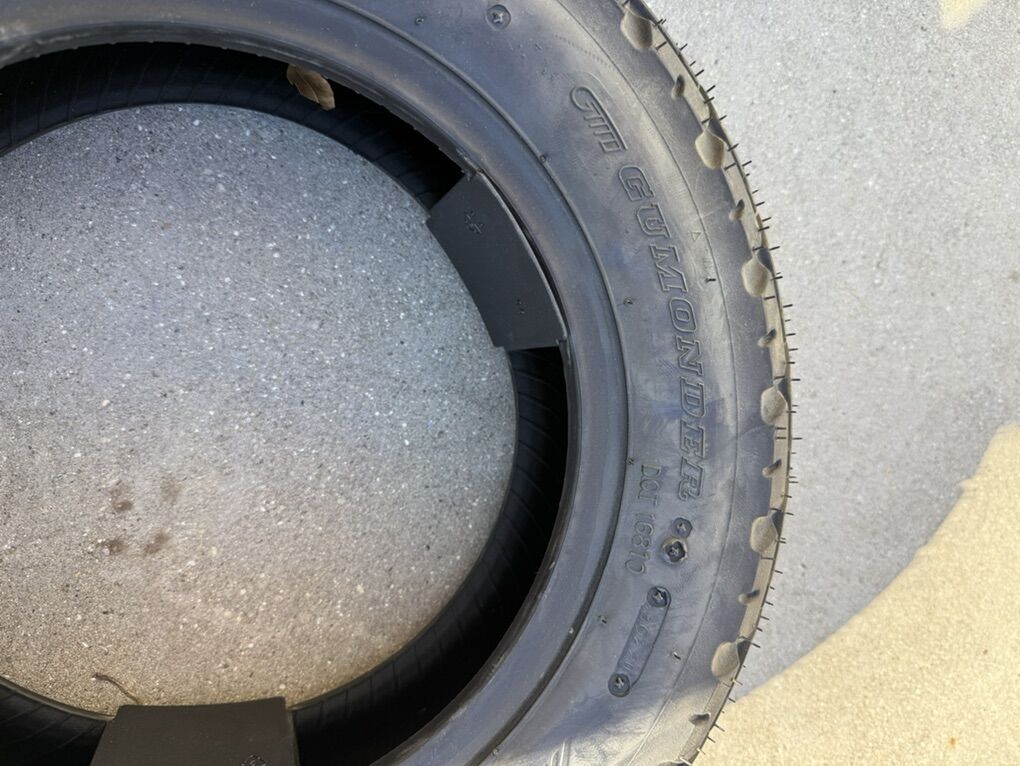 New tire, size 120/90-10, 8PR. Still has original labels attached. Great condition!