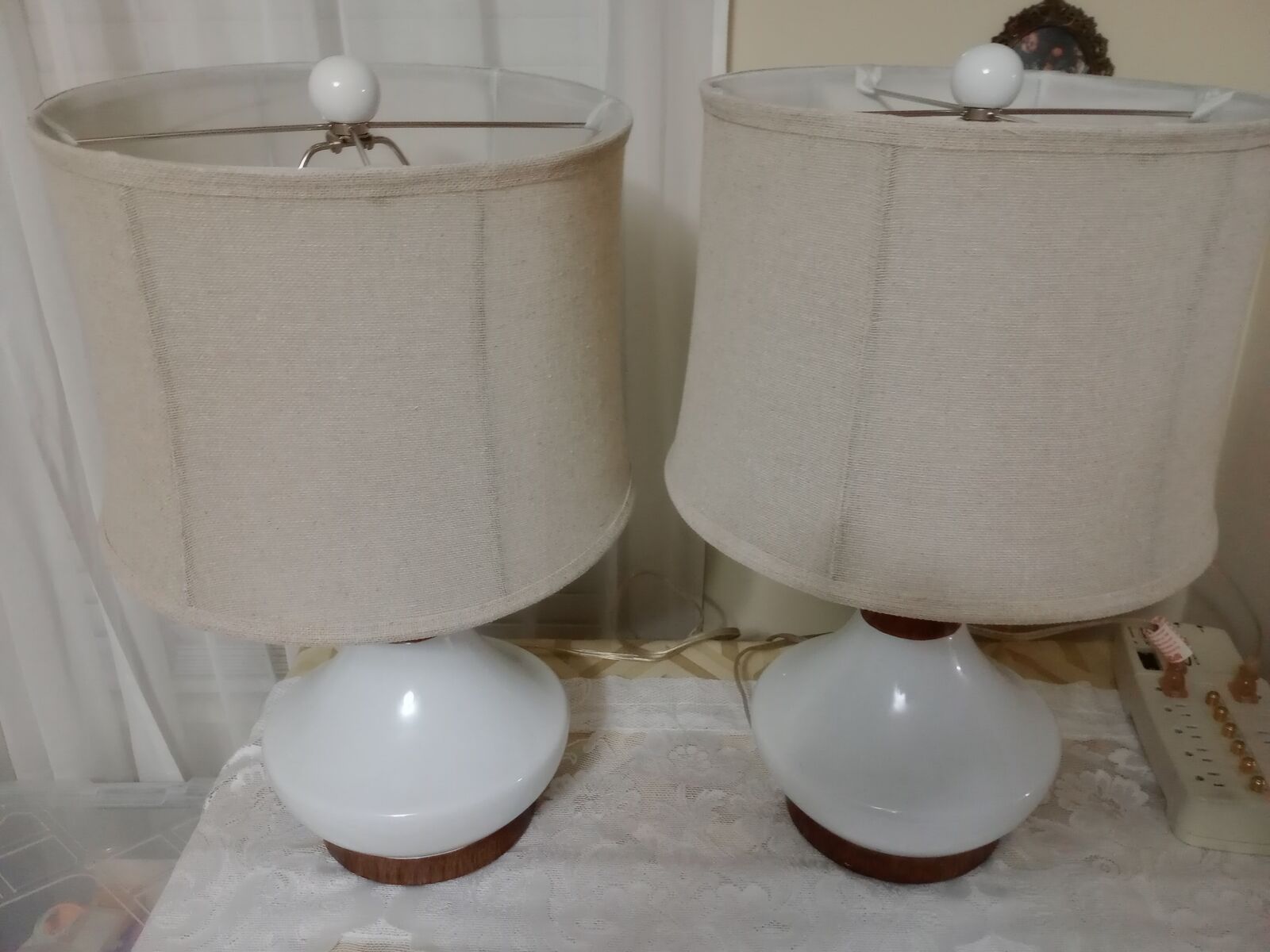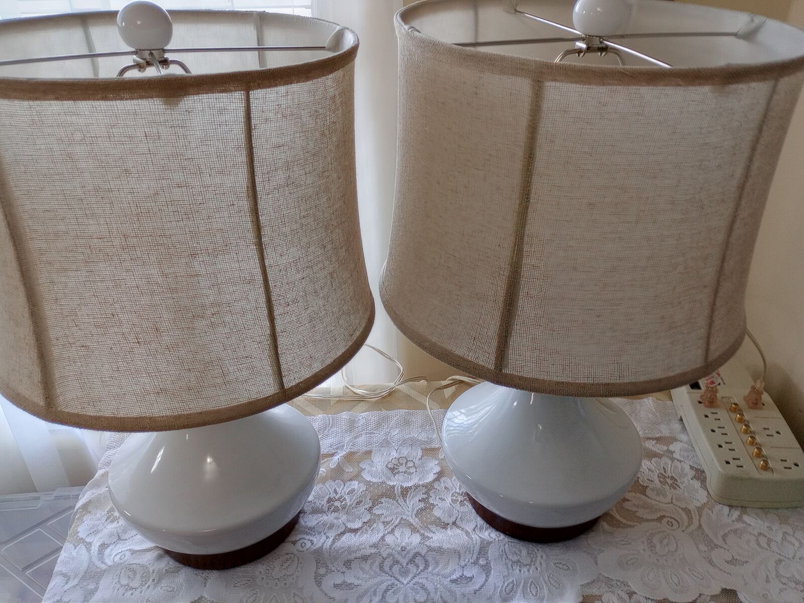 VenmoFor sale Two lamps Ceramic Table Round Fabric Shade in Excellent Condition.