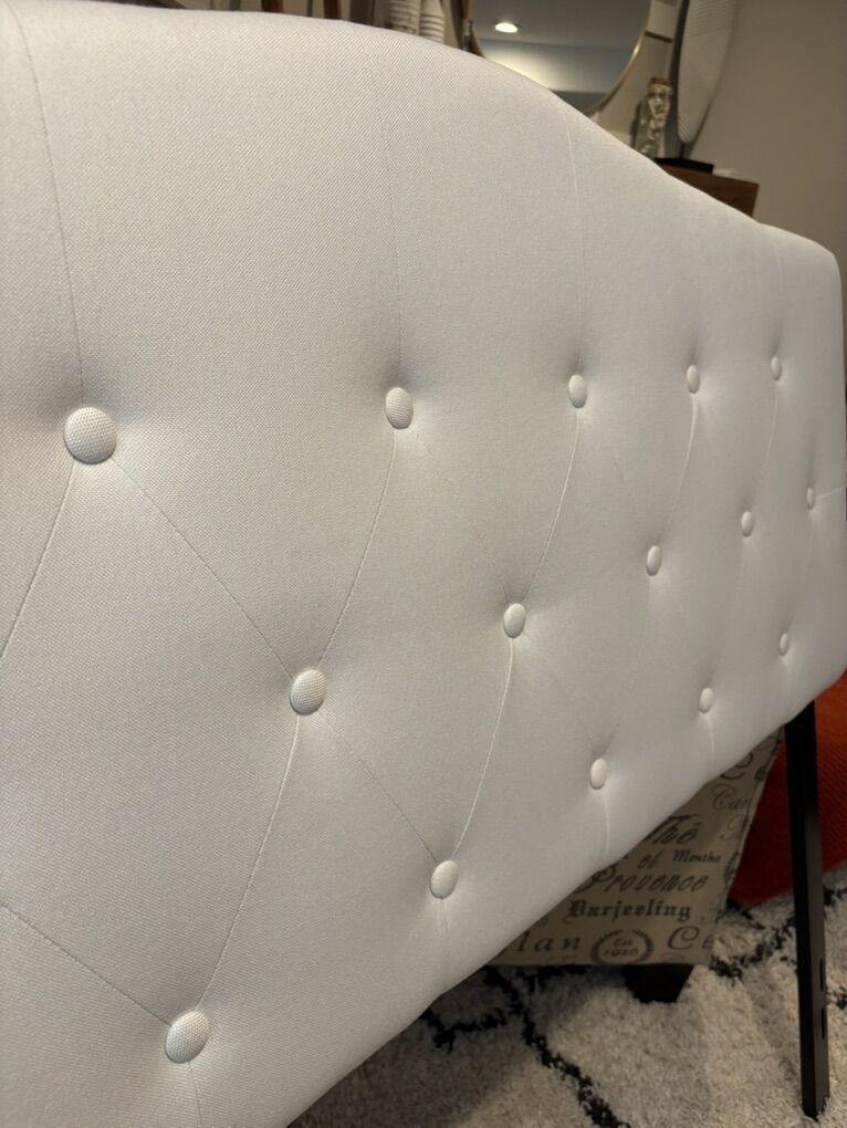 This full size headboard is like new. Only used for a short time. The legs are adjustable in height and have all the hardware for it too.