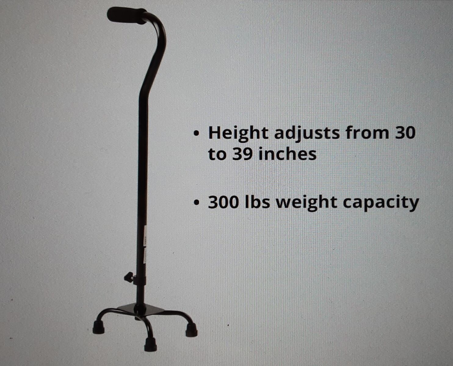This Is A McKesson Quad Walking Cane With Standard Base And 4-Legs For Stability With Height Adjustable And 300 lb Capacity.