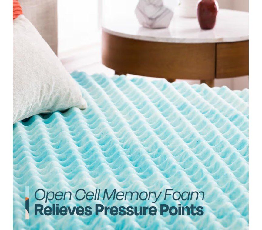 Light and breathable open cell memory foam molds to the contours of your body to relieve pressure points aches while you sleep.