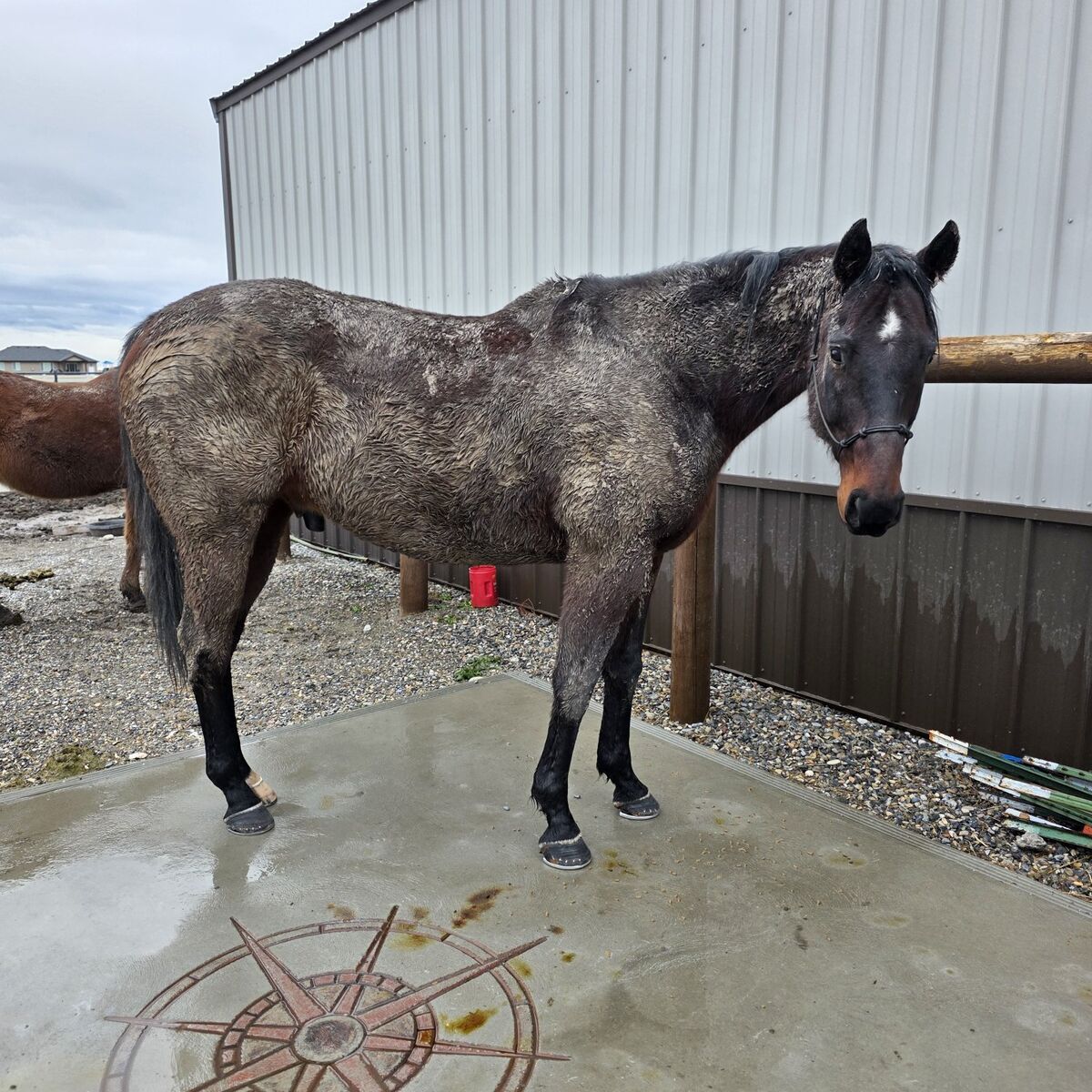 We have a 9 yr old bay gelding up for sale. We purchased this guy from a racing barn about 3 years ago. He loads great, stands tied and stands for the farrier. He does not do well barefoot and will need shoes. We have shown him in quite a few low key shows. He has been started on multiple events but is not advanced in any one event. He picks up all his gaits good and no buck or bolt. His trot is choppy and sometimes will lean into the bit when asked to stop from a lope. There is no buck or bolt. Has been taken on many trails and gone up the mountain to push cows. He is a fairly mellow horse and we will be sad to see him go. Before we purchased him he had surgery for chips in his knee. When he is ridden hard there is mild inflammation in that knee. We have worked with our vet and are able to maintain it with small dose of previcox. We are moving and attempting to downsize our herd to make the process easier. We are firm on price as we have a place lined up for him if he does not sell. I will upload more photos/videos when I am able to make it over to where he is located. I have his jockey club papers on hand.