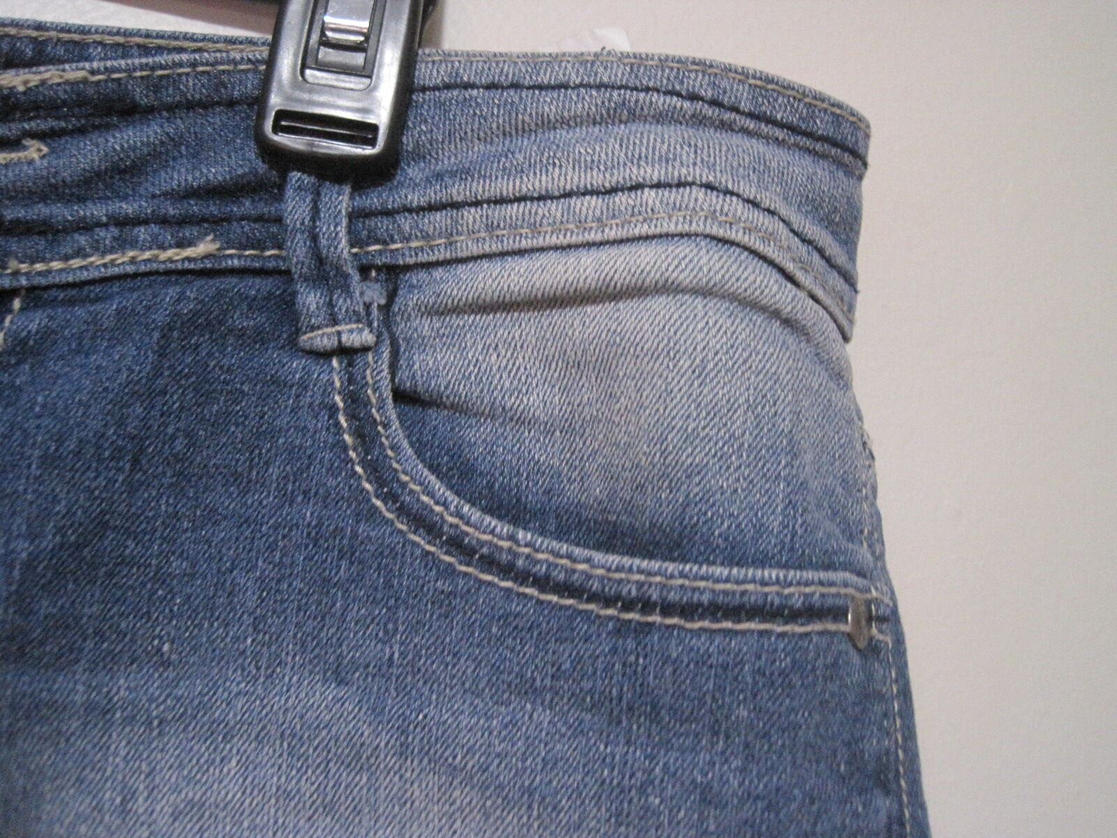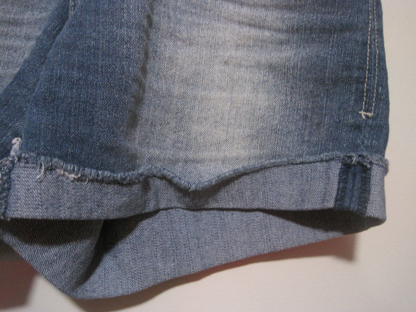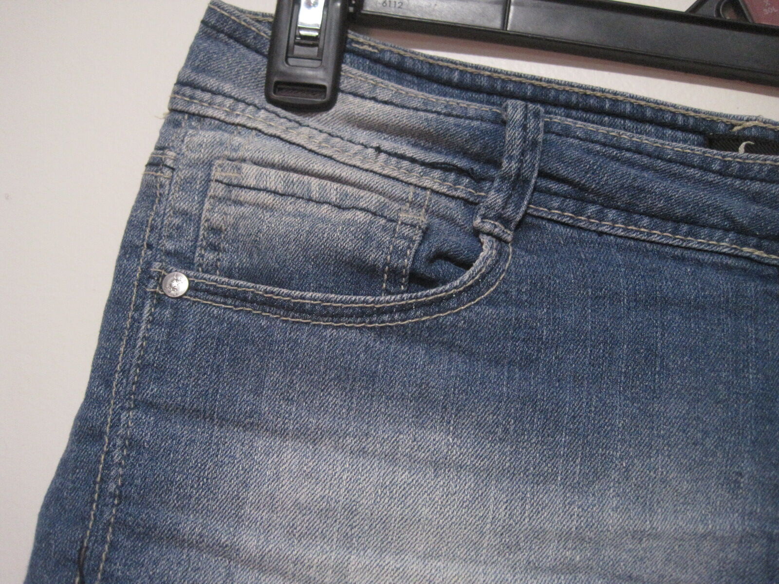 The product is a pair of L.E.I denim mini hot shorts in blue jean distressed women's size 9 junior with a rolled hem. These shorts feature a button and zip closure, a low rise, a 5-pocket design, a cuffed style, and are made of a blend of polyester, spandex, ramie, and cotton. With a 3.5-inch inseam and a waist size of 32 inches, these shorts are perfect for travel, activewear, and casual occasions during the summer season. The solid pattern, comfortable fit, and added features like pockets make these shorts a versatile and stylish addition to any wardrobe.