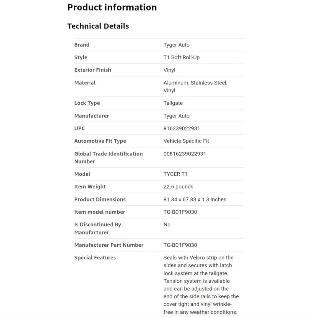 Tyger Auto T1 Soft Roll-up Truck Bed Tonneau Cover Compatible with 2015-2026 Ford F-150 | 6.5' (79") Bed | TG-BC1F9030