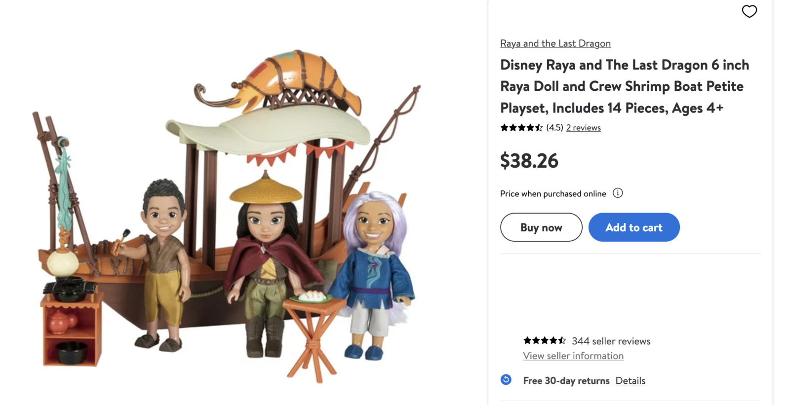 All aboard the world famous Shrimporium!! Full-time restaurant and part-time getaway vehicle, now you can recreate all the adventures Raya and crew have aboard the Shrimporium with Disney’s Raya and the Last Dragon Petite Raya & Crew Shrimporium Gift Set. Measuring over 17 inches long and complete with an expandable deck, over 10 accessories, and the straight-from-film shrimp right on top of the boat, the Shrimporium provides the ultimate Disney’s Raya and the Last Dragon play experience. Raya, Human Sisu and Boun are all dressed in their signature outfits from the film, and include 5 points of articulation, to make posing and playing with them so much fun.