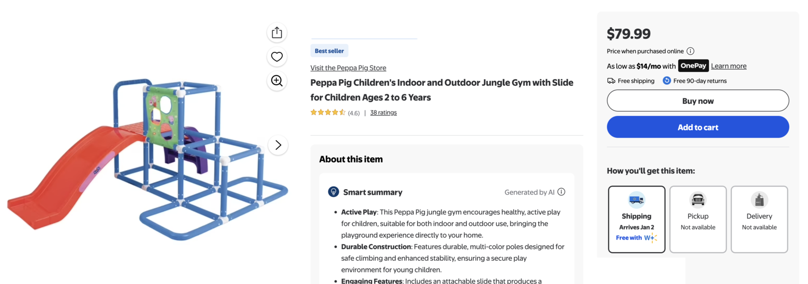 Active Play: This Peppa Pig jungle gym encourages healthy, active play for children, suitable for both indoor and outdoor use, bringing the playground experience directly to your home.
