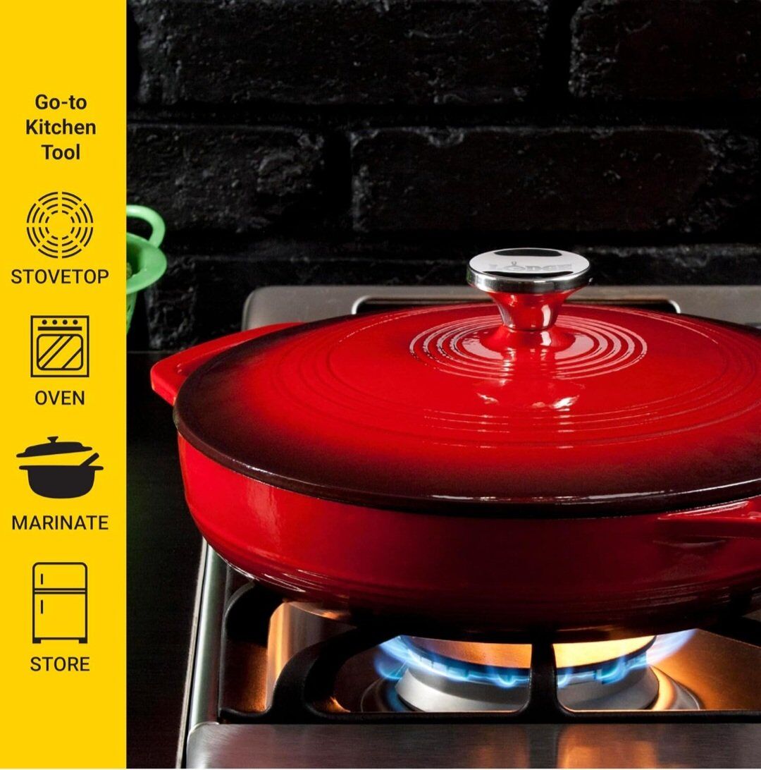 PayPalLodge 3.6 Quart Enameled Cast Iron Oval Casserole With Lid– Dual Handles – Oven Safe up to 500° F or on Stovetop - Use to Marinate, Cook, Bake, Refrigerate and Serve – Island Spice Red