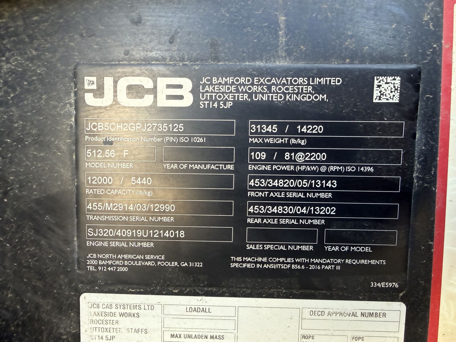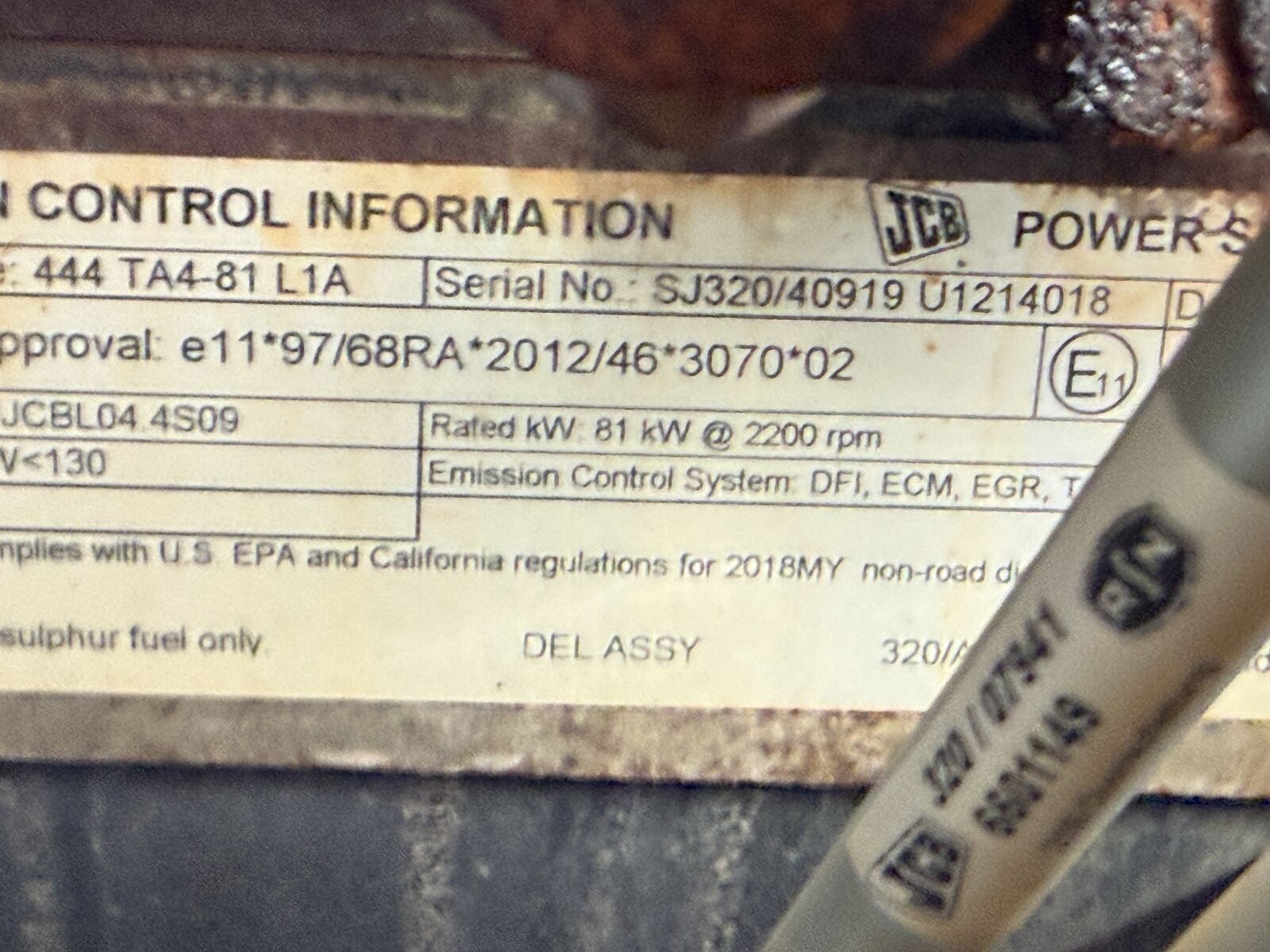 Engine Type: JCB 109 HP 4 Cylinder Turbo Diesel