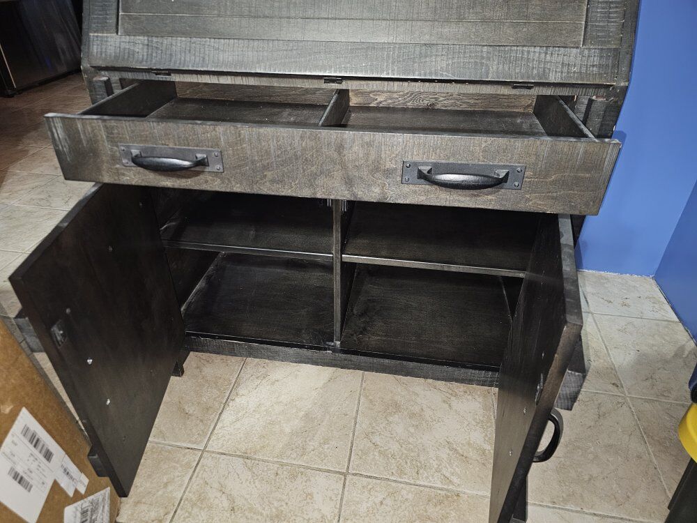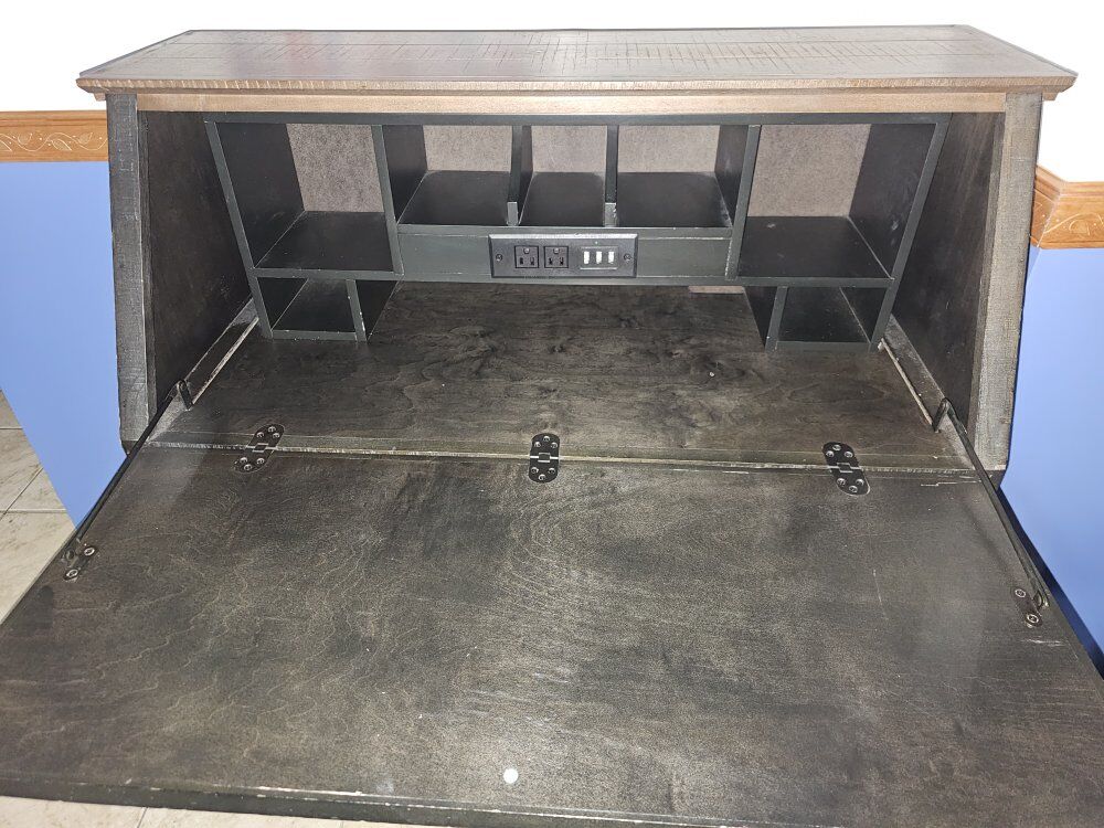 beautiful secretary desk made from charred Oak in excellent condition and needs a new home 35 w x 17D x 43 1/4 H