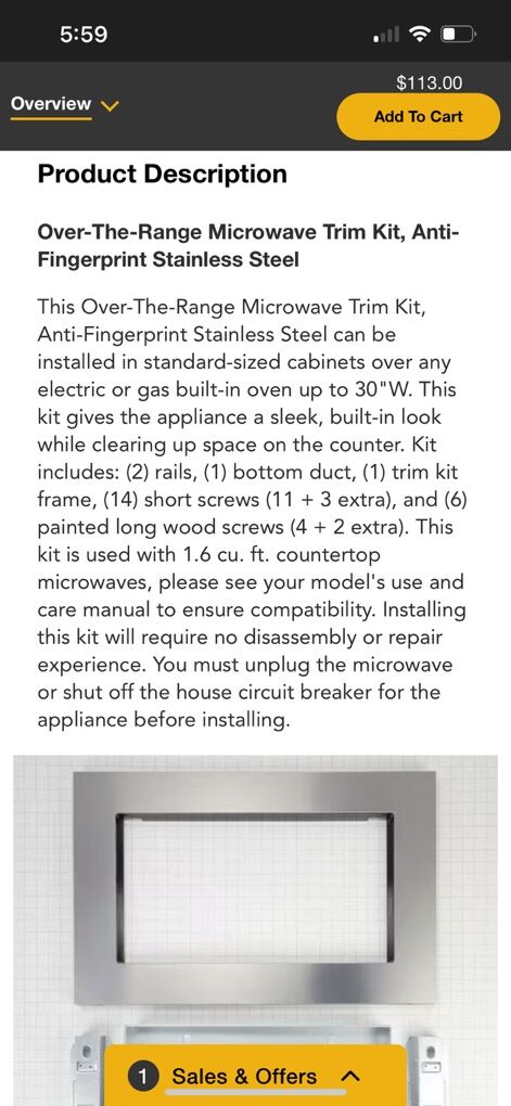 New Over-The-Range Microwave Trim Kit 30”Anti-Fingerprint Stainless Steel. Never opened save half off the store price.