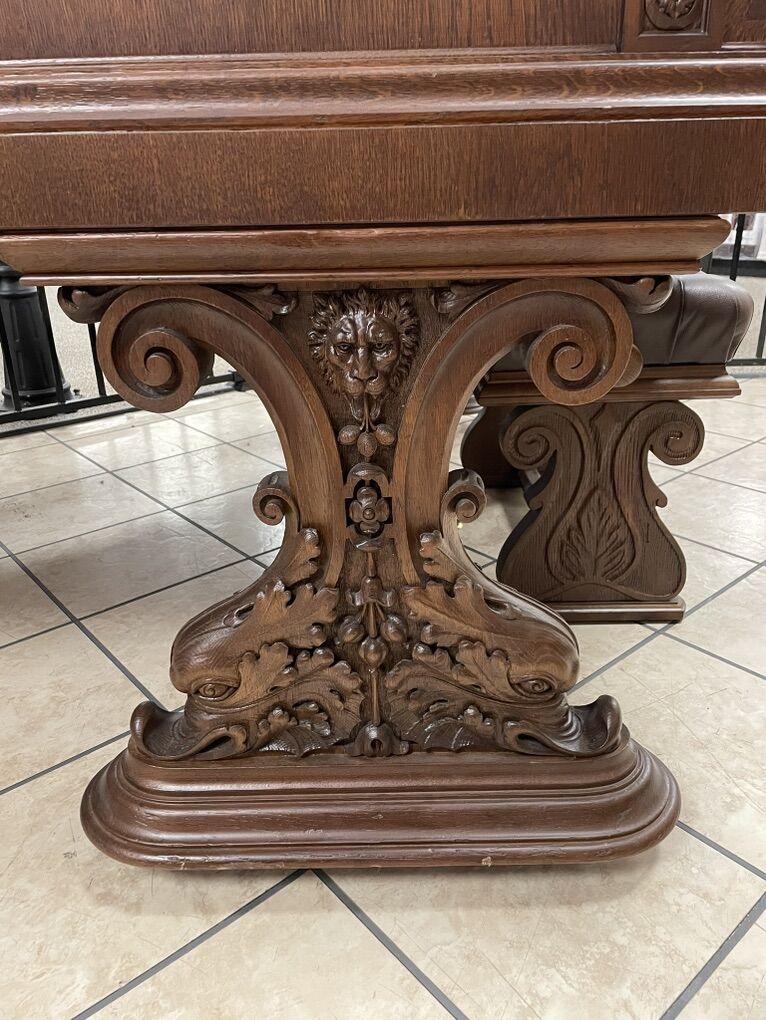 Exotic Wood Cabinet Restoration The ornate Victorian cabinet underwent complete restoration using Schimmel's exotic wood selection and modern finishing techniques, resulting in a stunning visual presentation that complements the instrument's exceptional musical qualities.