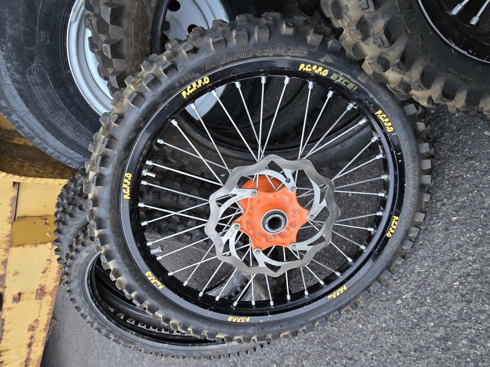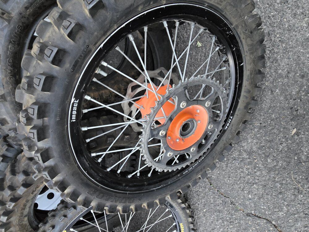 I have a set of wheels front/rear one is excel one is tusk, with Dunlop tires on them. And then I have 3 more front tires and 6 rear tires $450obo