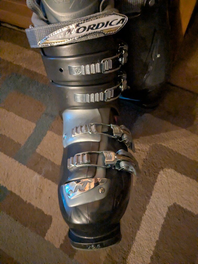These are new unused Nordica Women's easy on easy off, comfy ski boots. These are equal to women's 8 street shoes. Great deal on a fantastic boot if it fits you!