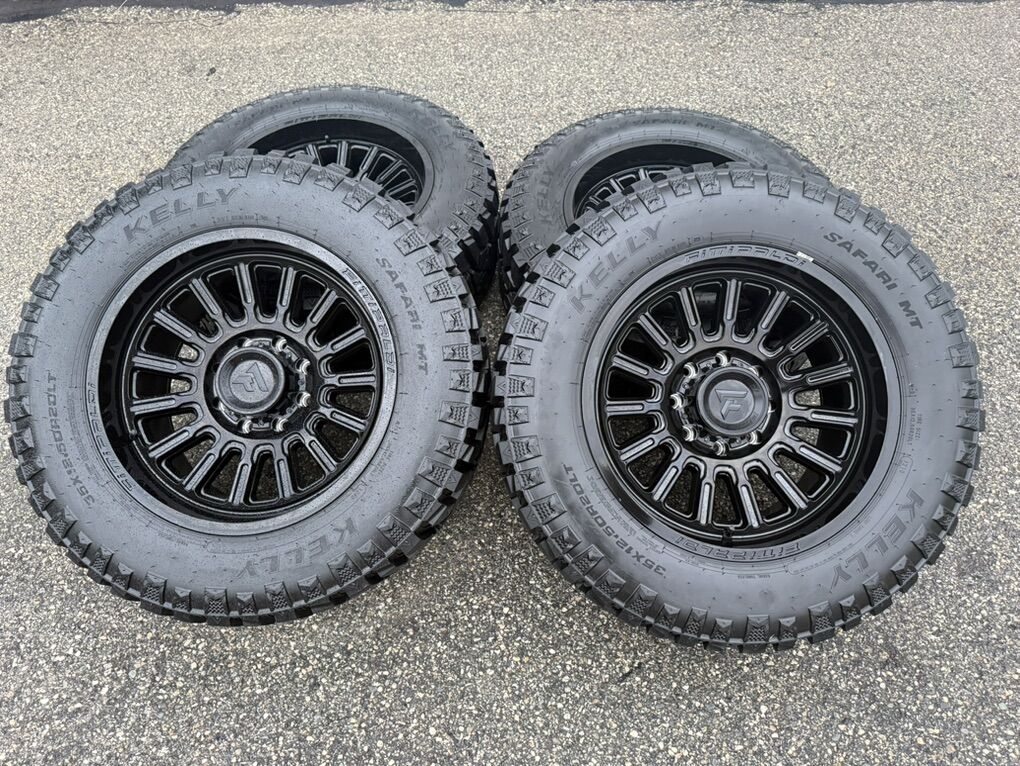 Tires are Kelly Safari M/T 35x12.50x20 10 ply Load Range E 121 load rating