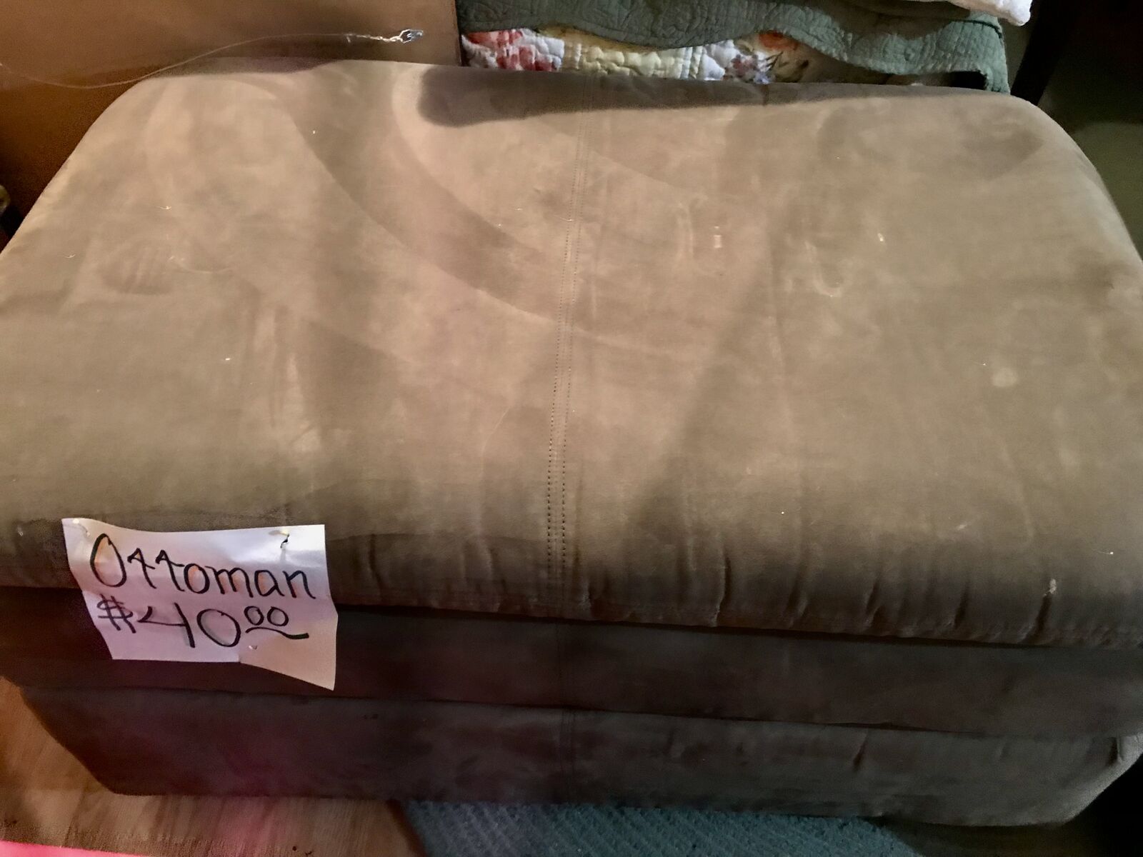 Sage green ottoman for sale. Approx. 2'x3' and 2' high. Great quality from RC Willey. Microfiber/Microsuede fabric.
