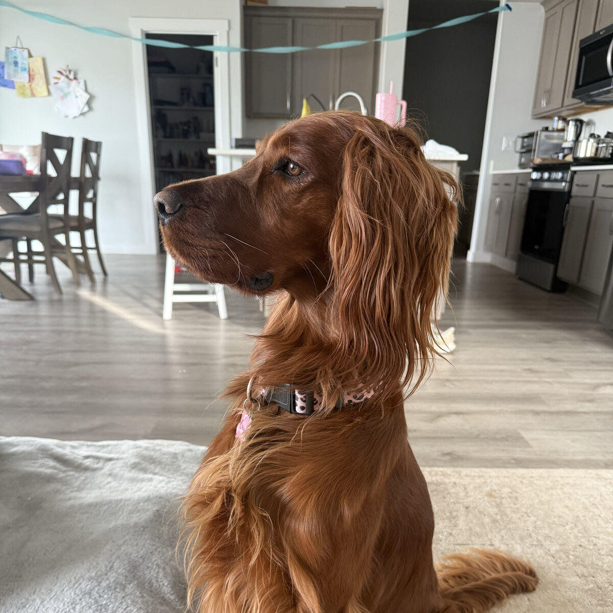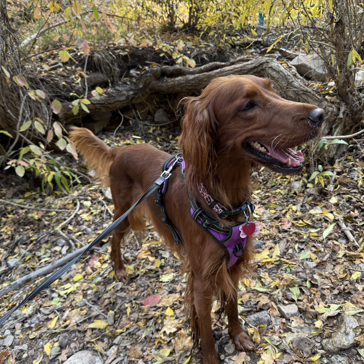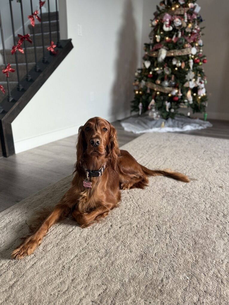 Irish Setters are amazing dogs known for their color, affection, and joyful personalities. They are gentle with kids, highly social, and thrive as part of the family. If you want a dog that wants to be involved in everyday life and loves companionship, our pups are a wonderful choice! And they have less hair than double coated breeds.