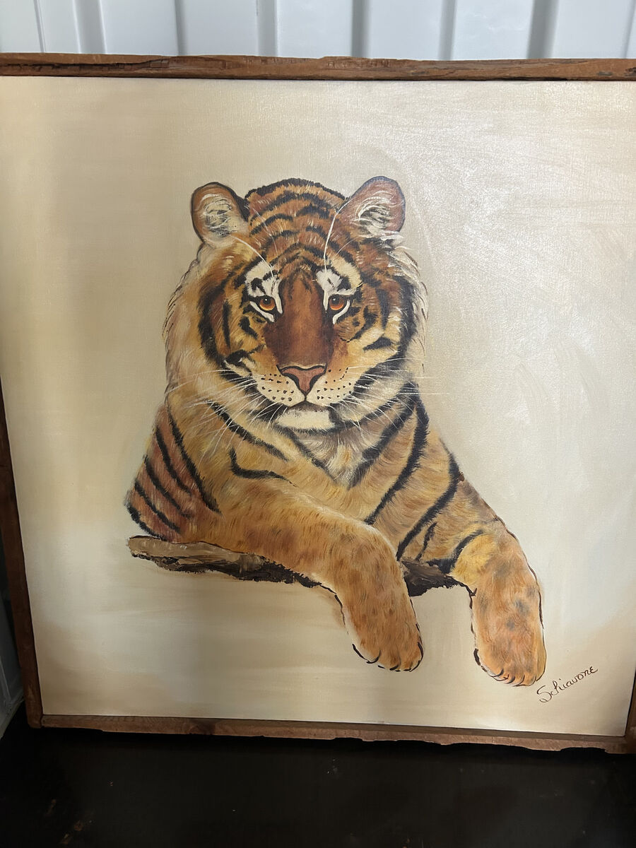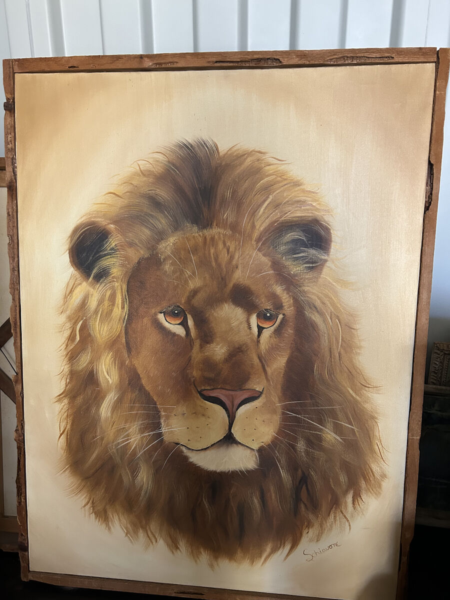 VenmoThree custom oil paintings on canvas, each a striking 4’ x 4’ with beautiful wooden frames. Tiger portrait Lion portrait (4'x5') Lion with two cubs in grass Bold, detailed, and truly eye-catching statement pieces. The owner no longer has space to display them and would rather see them enjoyed than stored away. Available individually or as a set. Perfect for homes, offices, lodges, or collectors. Asking for $1000 each OBO Message for details, or pricing negotiations.