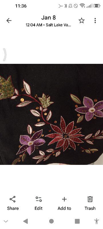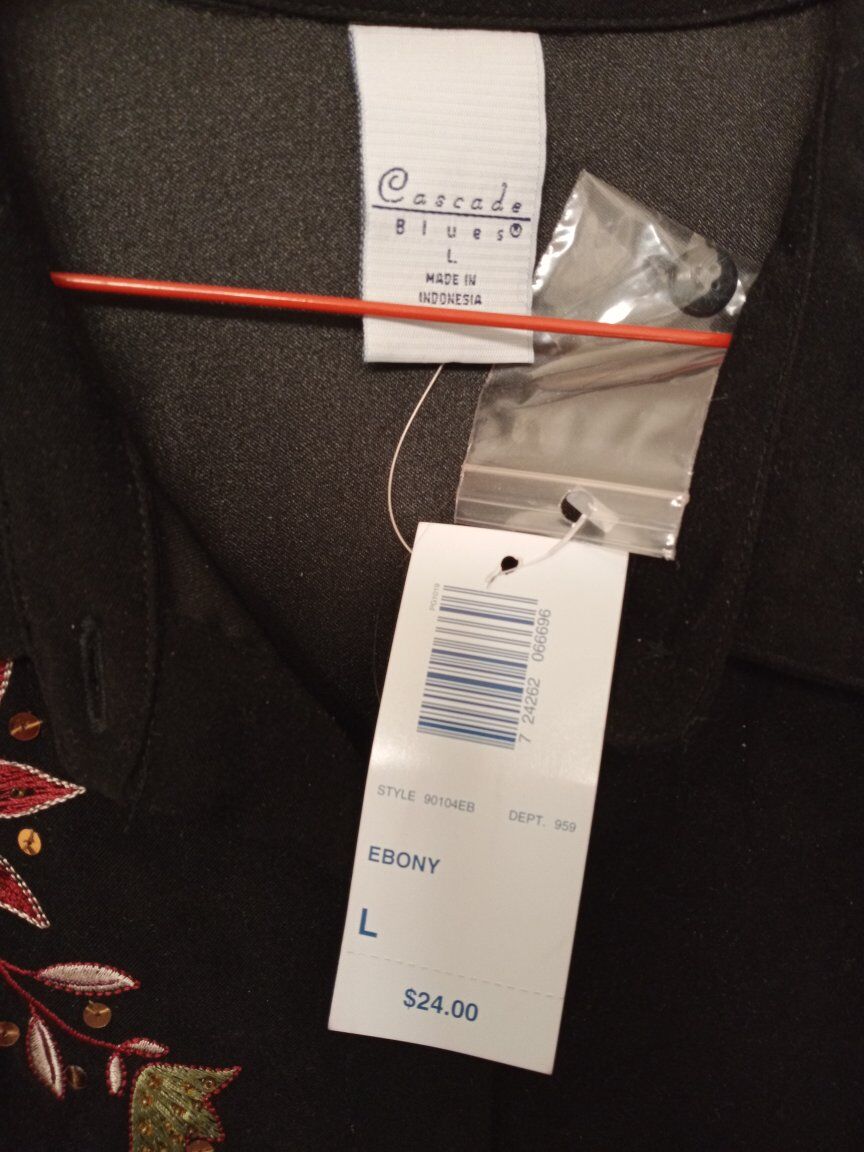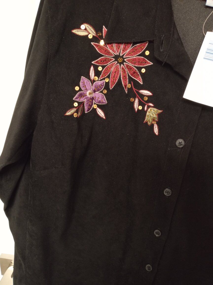 Cascade Blue Black Fabric with Colorful Floral Embroidery and Sequins. Size Large New Never Worn $20.00 CASH ONLY No Electronic Payments In West Valley