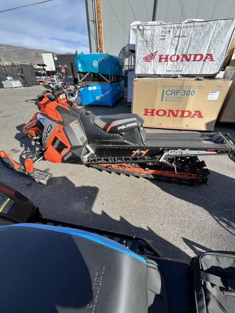 2017 Polaris® 800 PRO-RMK® 155 2.6" Series 6.0 SnowCheck Select LIGHTEST. STRONGEST MOST FLICKABLE. Features may include: Patented Raised AXYS® RMK® Chassis The AXYS® RMK® features a patented, raised chassis that increases clearance and reduces drag to keep you on top of the snow. This new chassis, purpose built for mountain riding, allows for improved sidehilling, faster and easier climbing, and instantaneous lift allowing the sled to pop onto the snow faster. The aluminum overstructure is lightweight and durable for all types of riding. Taller spindles increases clearance to reduce drag. Rear Suspension The lightweight, rigid rear suspension design features revised geometry to control pitch. This improves weight transfer, delivering better control and a more compliant ride. The rigid suspension delivers power directly to the snow. Off-trail, riders will notice improved weight transfer while maintaining the approach angle. On-Trail, riders will notice a more compliant and comfortable ride. The rear suspension features a new rail design that helps lift the rear skid while driving it forward. Proven 800 Cleanfire® H.O. Engine Developed in conjunction with the AXYS platform, the proven 800 Cleanfire® H.O. Engine delivers +10% increase in power-to-weight ratio and quicker throttle response to generate instantaneous lift. This is the same 800 H.O. engine released with great success in the 2015 Polaris RUSH and Switchback models, and has been proven through 100,000+ field testing miles. 3-Stage Electronically-Controlled Exhaust Valves 3-stage electronically-controlled exhaust valves provide improved running quality, crisper throttle response, smoother idle and improved fuel economy. The active feedback for the exhaust valve position provides more accurate fueling in transient situations. These exhaust valves also improve combustion stability, leading to improved durability and engine life. Electronic Oil Pump Electronic oil pump eliminates power-robbing gear drive – and provides more precise, improved oil delivery for performance and durability as well as a 35% reduction in throttle effort. Requires no adjustments. High-Efficiency Intake and Exhaust New porous intake duct material and high-flow exhaust system create a better breathing engine package for more power. An all-new silencer provides reduced sound levels. Vforce reeds provide improved performance, throttle response and reed durability. VForce Reeds Provide improved performance, throttle response, and reed durability. Lightweight Crankshaft Lightweight crankshaft weighs 2.5 lbs less, delivering 25% lower inertia and quicker throttle response and spooling. This provides improved acceleration. Designed and engineered specifically for the 800 Cleanfire® H.O. Engine for increased durability, this same lightweight crankshaft is used in Polaris Race sleds since the 2013-14 and 2014-15 season, showing it's proven durability. 800 H.O. Grooved Piston New grooved piston was designed specifically for the new 800 HO Cleanfire® Engine to increase durability and engine life. Polaris® Series 6 2.6" Track The Polaris® exclusive Series 6 2.6" track provides the ultimate all mountain performance. The new lightweight track is designed for improved deep snow and hard pack traction and better lift.