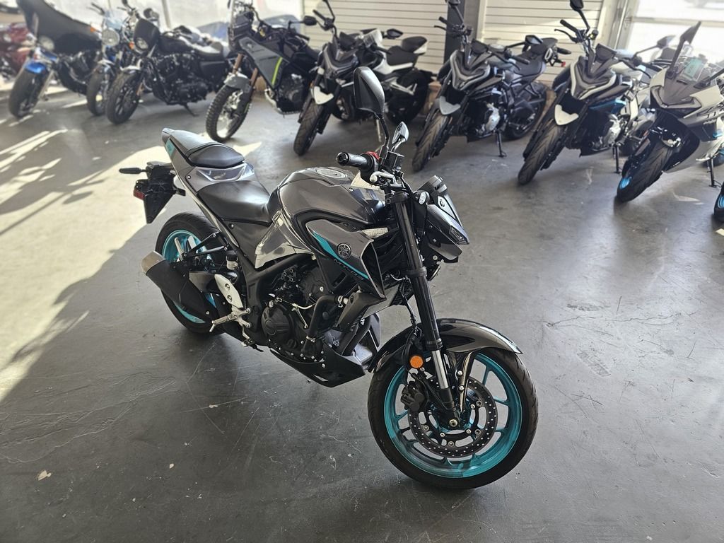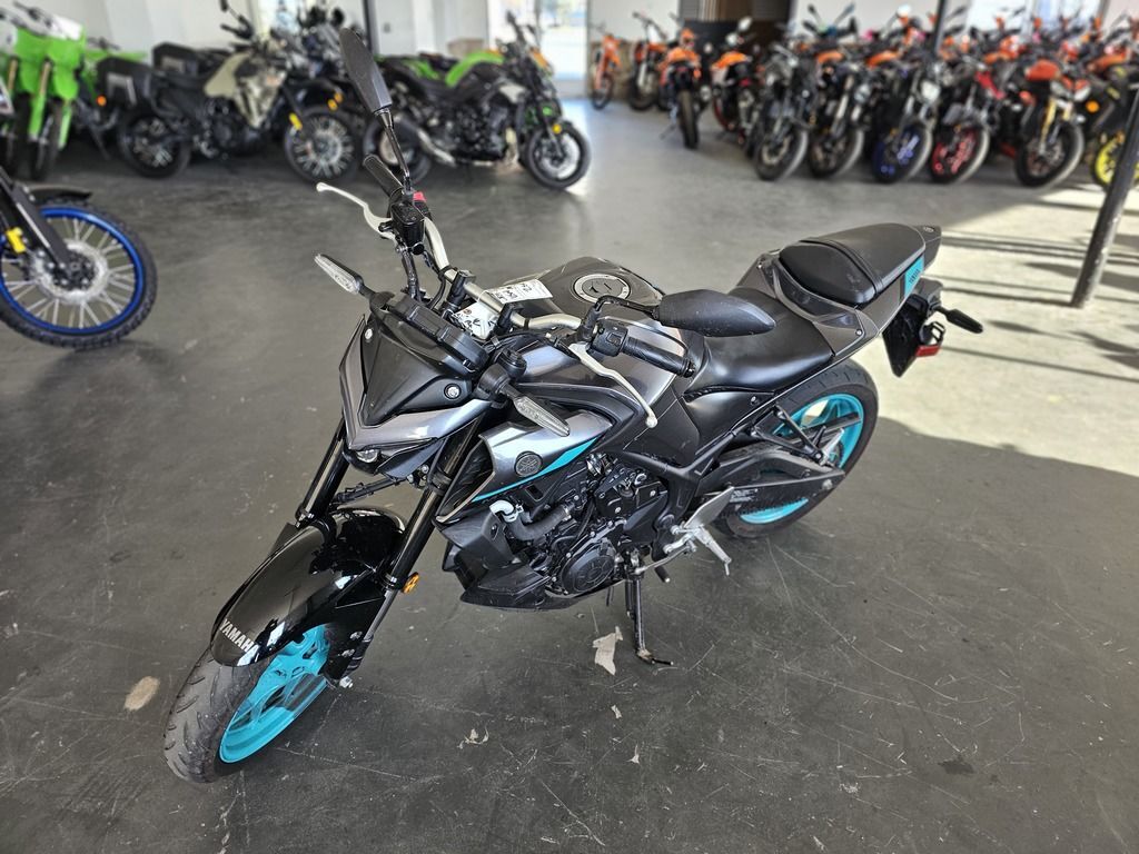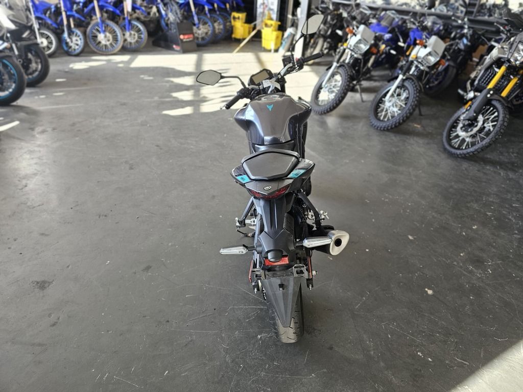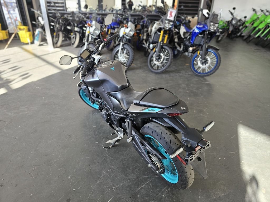 2024 Yamaha MT-03 THE DARK BECKONS Your entry to the Dark Side. Built to thrill with a twin-cylinder engine, aggressive looks and serious street presence. Features may include: TOP FEATURES Smooth & Easy To Ride Power Delivery This 321cc liquid-cooled two-cylinder engine features lightweight forged pistons and carburized connecting rods, delivering easy to manage power in the low rpm range with strong high rpm power. The extremely light clutch feeling makes the MT-03 even more fun in the city, while its offset cylinders and advanced fuel injection system ensures smooth throttle response. Dual Position Lights with Singular LED Headlight The dynamic MT-03 looks cool with its dual angled position lights that emphasize its aggressive big-bike looks. A single compact and powerful LED headlight burns a hole through the darkness to light up the road ahead. ENGINE Potent Twin-Cylinder Powerplant Yamaha’s 321cc liquid-cooled, inline two-cylinder engine delivers excellent power and performance throughout the rpm range. With a 180-degree crank design and integrated counterbalancer, the layout minimizes vibrations for a smooth, refined engine character. Smooth & Useable Power With double overhead cams (DOHC) and four-valve cylinder heads, the MT-03 engine provides easy-to-manage power at low rpms with strong rpm power—ultimately delivering an exciting ride with a broad spread of power. Six-Speed Transmission A smooth-shifting six-speed gearbox ensures the rider always has the right ratio, whether riding through tight city streets or on the open highway. CHASSIS/SUSPENSION Inverted KYB® Front Fork The MT-03 features an inverted KYB® fork with optimized spring and damping settings, delivering more solid handling when compared to motorcycles using conventional front forks. Monocross Rear Shock The seven-step preload adjustable single-shock design is tuned to strike a balance between ride comfort and sporty performance with capability across a wide range of uses, from urban commuting to extended rides into the twisty canyons. Long Swingarm The MT-03 is equipped with a 22.6-inch long asymmetrical swingarm that provides a planted ride during braking, cornering and acceleration. ADDITIONAL FEATURES Stylish LED Turn Signals Light-Emitting Diode (LED) elements are used for both the front and rear turn signals. Not only do LEDs offer long life with minimal power draw, they provide brilliant illumination for confidence and visibility, during the day or night. The MT-03’s dynamic appearance is reinforced by the LED signals that perfectly complement the bike’s aggressive looks. Dynamic Mass Forward Design Yamaha’s Hyper Naked bikes are instantly recognizable thanks to their aggressive and powerful design. A sculpted fuel tank cover is designed to fit snugly with the rider while the lightweight air scoops enhance the look and feel of the mass-forward body design and highlight the dynamic MT family look. Ergonomic Riding Position With its compact body and low 30.7-inch seat height, the MT-03 is a joy to ride whether you’re escaping traffic or having a blast out on the open road. Behind the aggressive bodywork, a specially sculpted knee area and fuel tank cover work with the high-mounted handlebars to provide an agile and ergonomic riding position. Digital LCD Instrumentation To match the MT-03 Hyper Naked’s radical looks, Yamaha has fitted a stylish LCD meter that provides easy-to-absorb information.