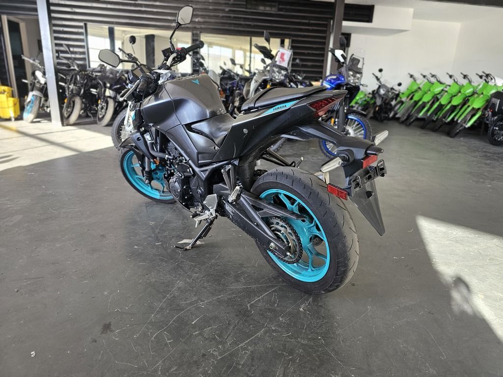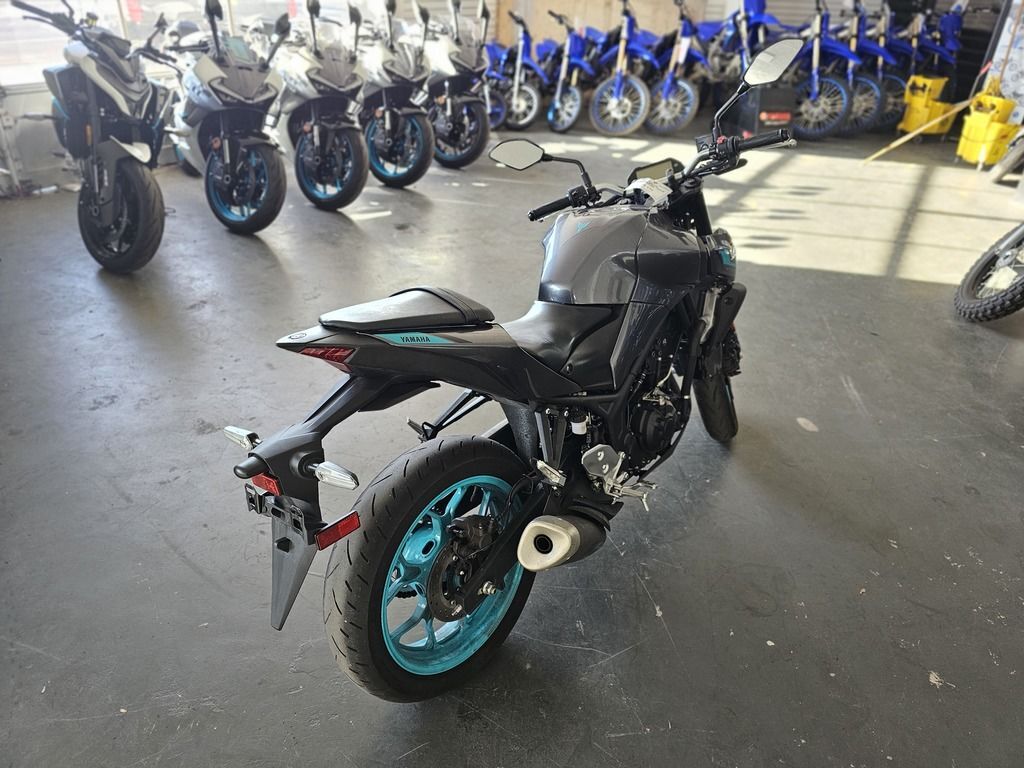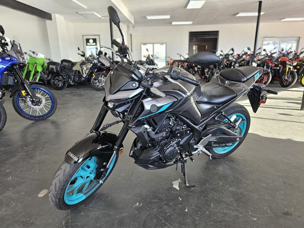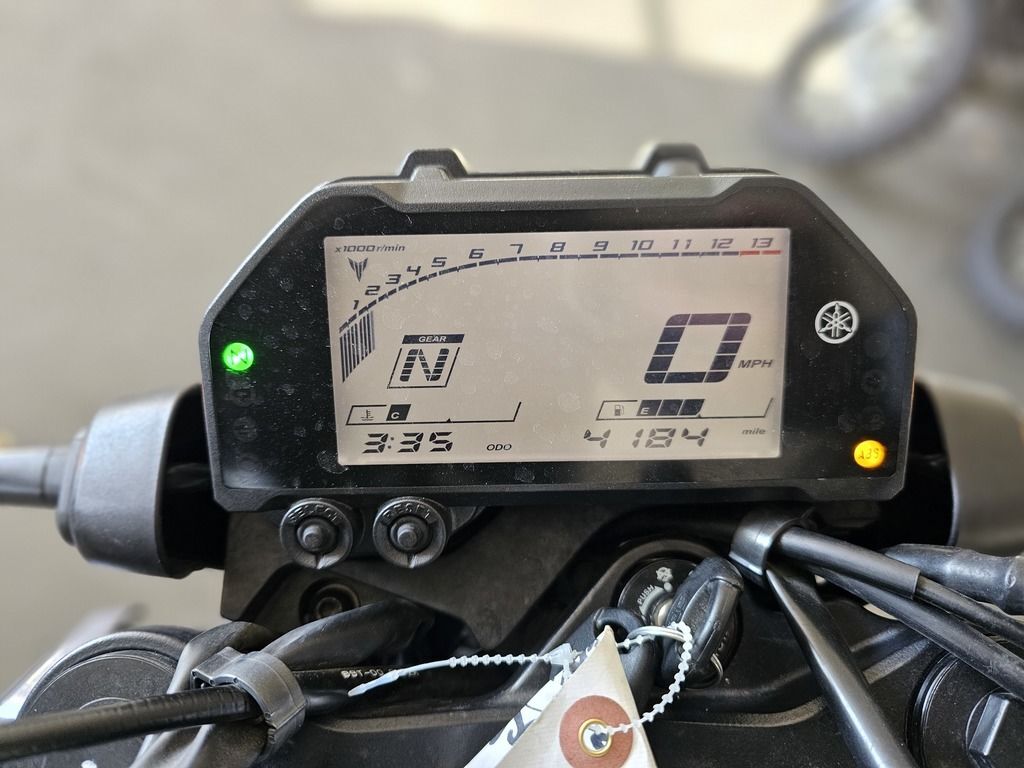 2024 Yamaha MT-03 THE DARK BECKONS Your entry to the Dark Side. Built to thrill with a twin-cylinder engine, aggressive looks and serious street presence. Features may include: TOP FEATURES Smooth & Easy To Ride Power Delivery This 321cc liquid-cooled two-cylinder engine features lightweight forged pistons and carburized connecting rods, delivering easy to manage power in the low rpm range with strong high rpm power. The extremely light clutch feeling makes the MT-03 even more fun in the city, while its offset cylinders and advanced fuel injection system ensures smooth throttle response. Dual Position Lights with Singular LED Headlight The dynamic MT-03 looks cool with its dual angled position lights that emphasize its aggressive big-bike looks. A single compact and powerful LED headlight burns a hole through the darkness to light up the road ahead. ENGINE Potent Twin-Cylinder Powerplant Yamaha’s 321cc liquid-cooled, inline two-cylinder engine delivers excellent power and performance throughout the rpm range. With a 180-degree crank design and integrated counterbalancer, the layout minimizes vibrations for a smooth, refined engine character. Smooth & Useable Power With double overhead cams (DOHC) and four-valve cylinder heads, the MT-03 engine provides easy-to-manage power at low rpms with strong rpm power—ultimately delivering an exciting ride with a broad spread of power. Six-Speed Transmission A smooth-shifting six-speed gearbox ensures the rider always has the right ratio, whether riding through tight city streets or on the open highway. CHASSIS/SUSPENSION Inverted KYB® Front Fork The MT-03 features an inverted KYB® fork with optimized spring and damping settings, delivering more solid handling when compared to motorcycles using conventional front forks. Monocross Rear Shock The seven-step preload adjustable single-shock design is tuned to strike a balance between ride comfort and sporty performance with capability across a wide range of uses, from urban commuting to extended rides into the twisty canyons. Long Swingarm The MT-03 is equipped with a 22.6-inch long asymmetrical swingarm that provides a planted ride during braking, cornering and acceleration. ADDITIONAL FEATURES Stylish LED Turn Signals Light-Emitting Diode (LED) elements are used for both the front and rear turn signals. Not only do LEDs offer long life with minimal power draw, they provide brilliant illumination for confidence and visibility, during the day or night. The MT-03’s dynamic appearance is reinforced by the LED signals that perfectly complement the bike’s aggressive looks. Dynamic Mass Forward Design Yamaha’s Hyper Naked bikes are instantly recognizable thanks to their aggressive and powerful design. A sculpted fuel tank cover is designed to fit snugly with the rider while the lightweight air scoops enhance the look and feel of the mass-forward body design and highlight the dynamic MT family look. Ergonomic Riding Position With its compact body and low 30.7-inch seat height, the MT-03 is a joy to ride whether you’re escaping traffic or having a blast out on the open road. Behind the aggressive bodywork, a specially sculpted knee area and fuel tank cover work with the high-mounted handlebars to provide an agile and ergonomic riding position. Digital LCD Instrumentation To match the MT-03 Hyper Naked’s radical looks, Yamaha has fitted a stylish LCD meter that provides easy-to-absorb information.