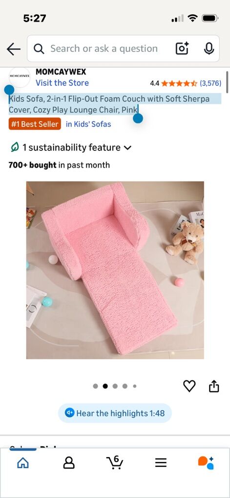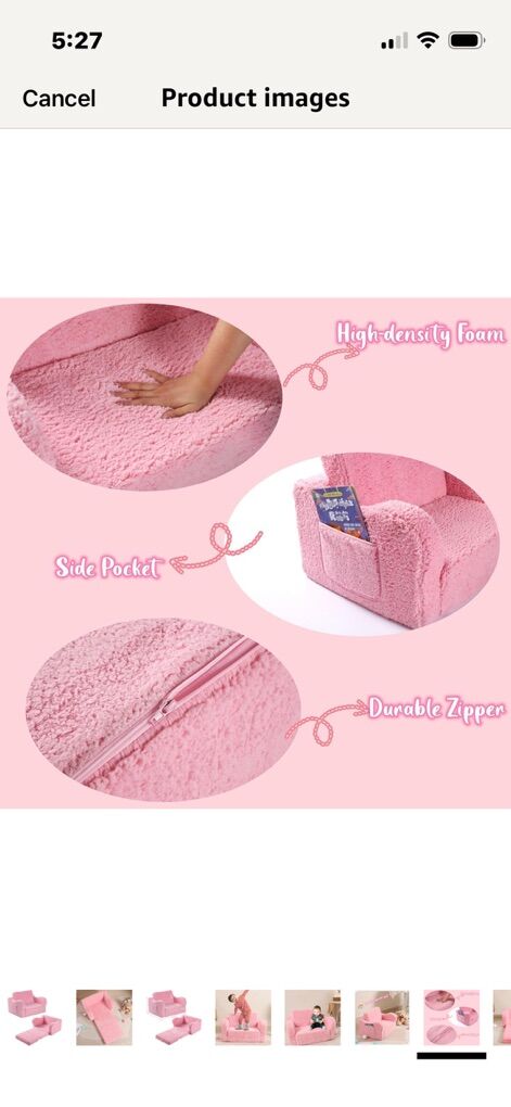 ZelleBrand new…Kids Sofa, 2-in-1 Flip-Out Foam Couch with Soft Sherpa Cover, Cozy Play Lounge Chair, Pink This came in pallet auction. Was in plastic shrink wrap I had to open it to see what the item was. This couch is cute. Retails $70 Check out my other adds, or set up a time to come shop my little garage store