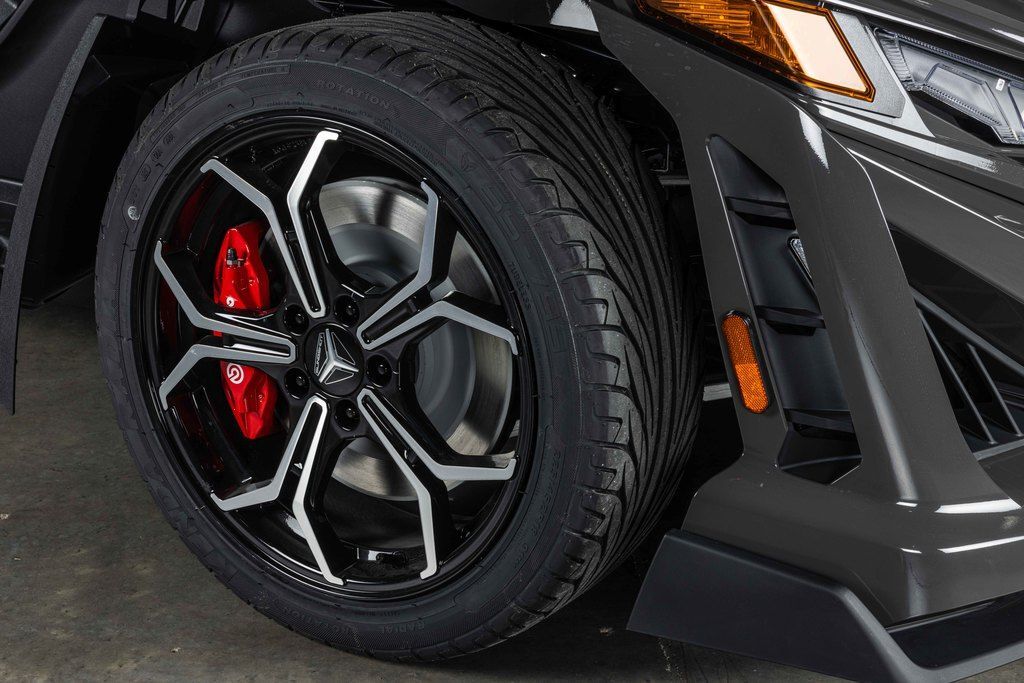 The premium Brembo® braking system with multi-piston painted calipers and lightweight rotors improve the performance, aesthetics, and comfort of your Slingshot.