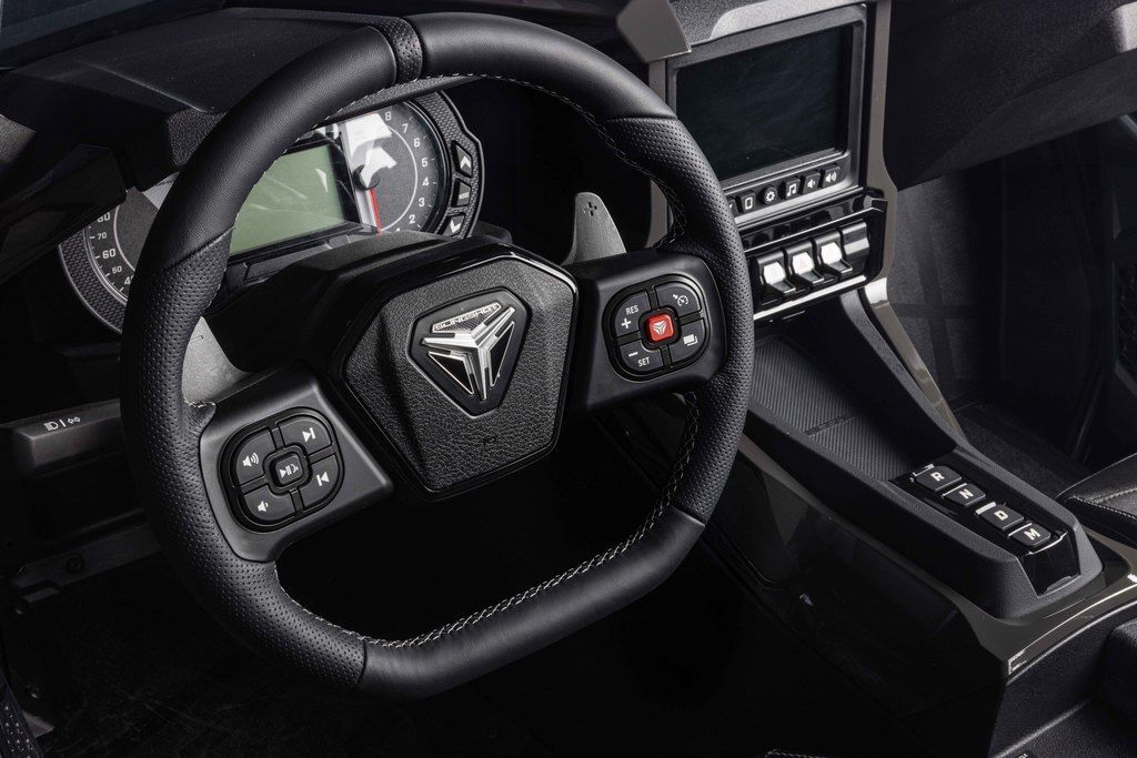 The Slingshot R delivers top of the lineup enhancements for those who never settle and love to stand out. The front end gets a high-performance facelift with the newly designed, fully painted R front fascia and the eye-catching Vented Sport Hood. Premium multi-tone paint from tip to tail, integrated navigation, Apple CarPlay®, machined wheels, and Brembo® brakes round out this top of the line model. For AutoDrive, the R model ups the fun-factor with the addition of paddle shifters. Get ready to stand out like no other—while still having plenty of options to make it your own.
