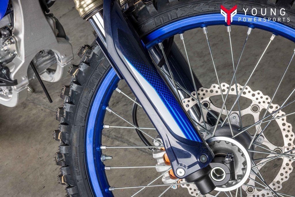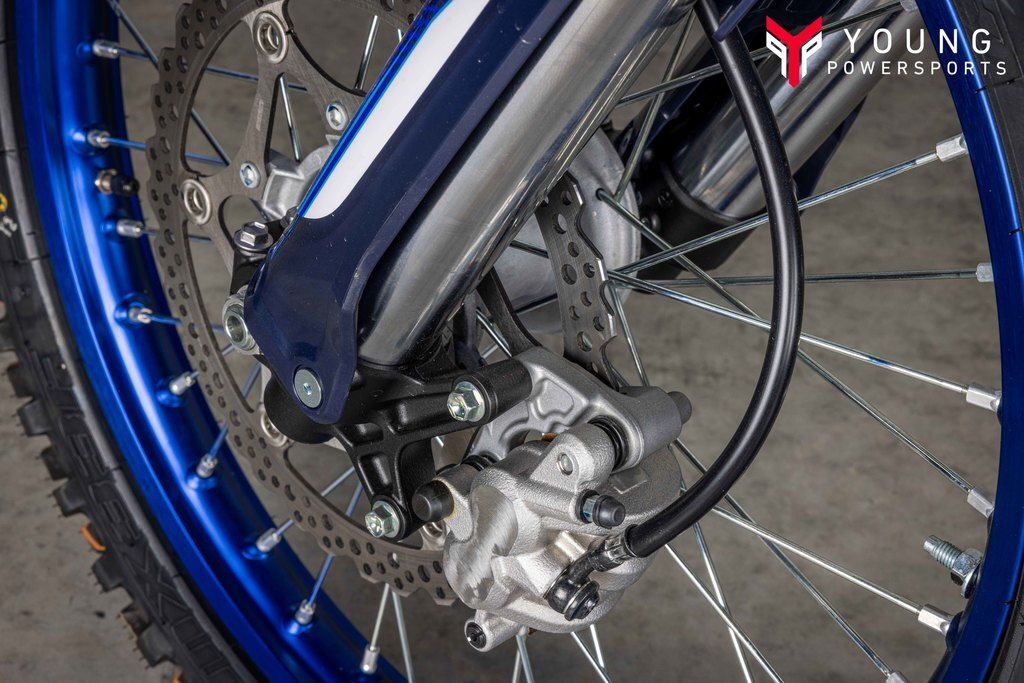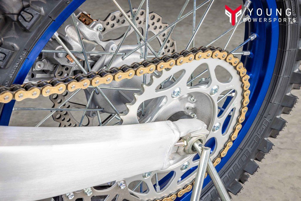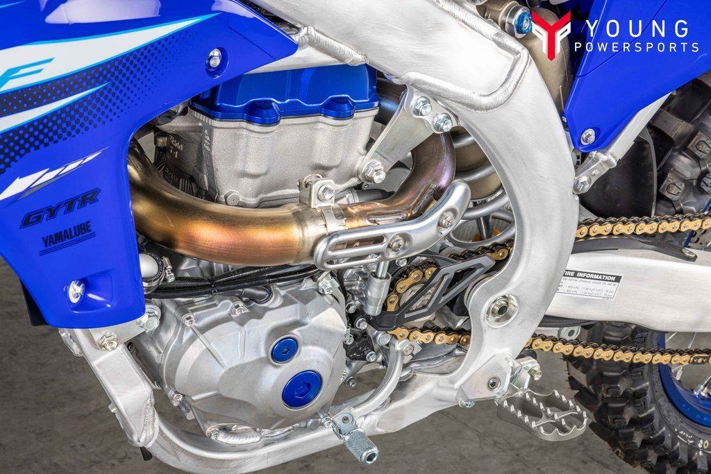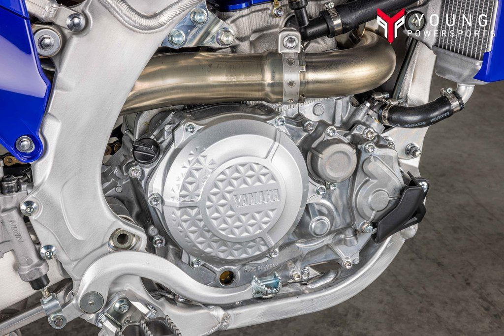 Powerful 450cc Four-Stroke EngineFeaturing a reversed cylinder head layout, forged aluminum piston, 39 mm titanium valves, lightened crank assembly and dry sump lubrication, the 2025 YZ450F's advanced DOHC four-stroke engine is light, compact and world renowned for its incredibly broad pulling power across the entire rev range.