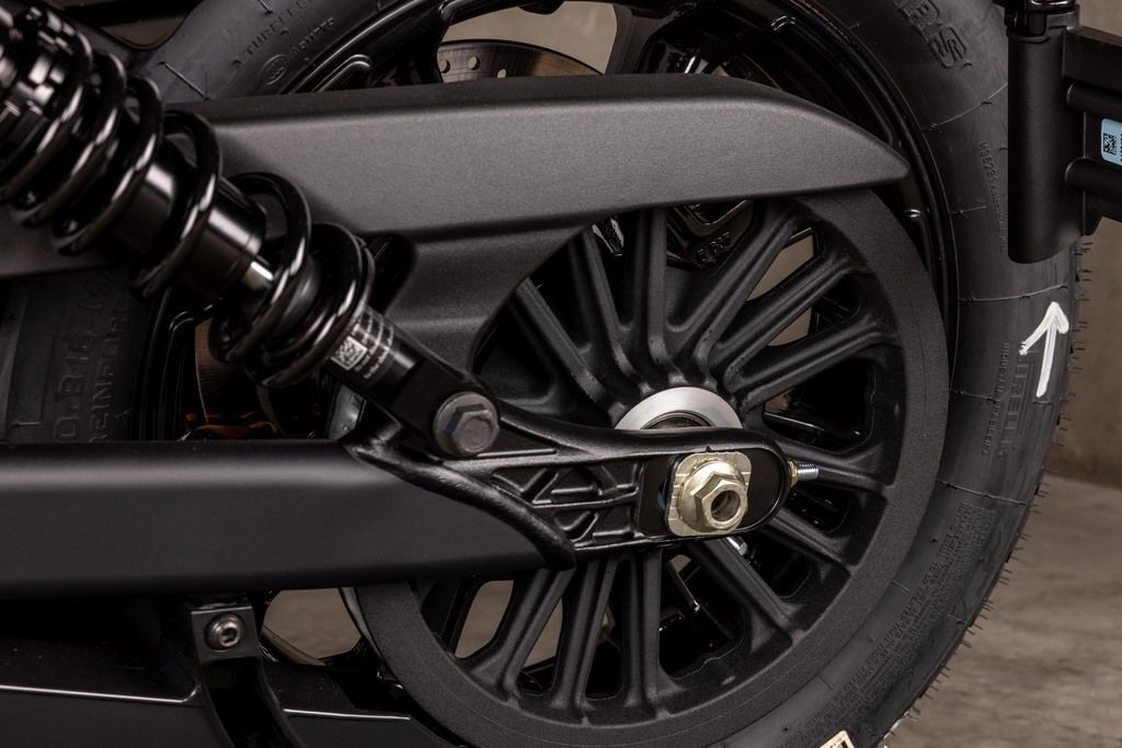 The contour lines on the rear fender seamlessly connect with the modern and dynamic Scout gas tank, creating a unified and premium blacked out aesthetic.