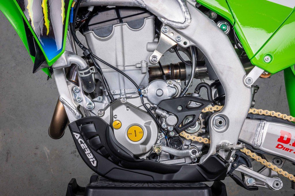 The KX™450 motorcycle engine delivers broad, useable torque and strong, responsive power across the rev range. From the starting gate to the finish line, this race-ready machine is built to stay ahead of the pack.