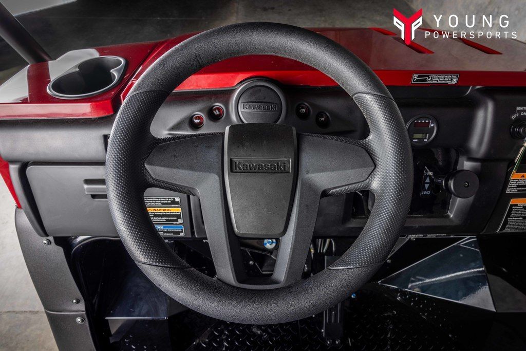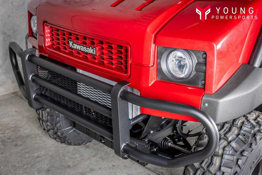 Steel tube ladder-type frame is the sturdy foundation of Kawasaki MULE™ side x sides. Optimized rigidity contributes to traction, stability, and ride comfort while the Roll Over Protective Structure (ROPS) and steel front bumper provide a rugged external structure.