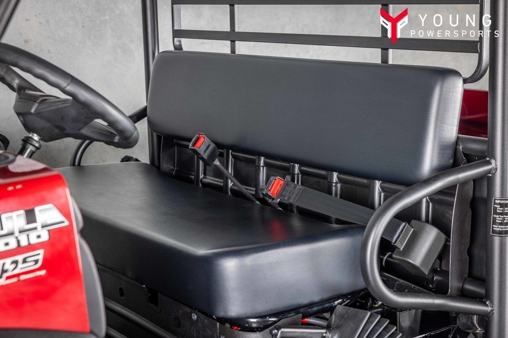 Independent MacPherson strut-type front suspension and DeDion rear suspension provide a firm and predictable platform that is ideal for a work-oriented side x side. Tow up to 1,200 lbs and carry up to 800 lbs in the cargo bed.