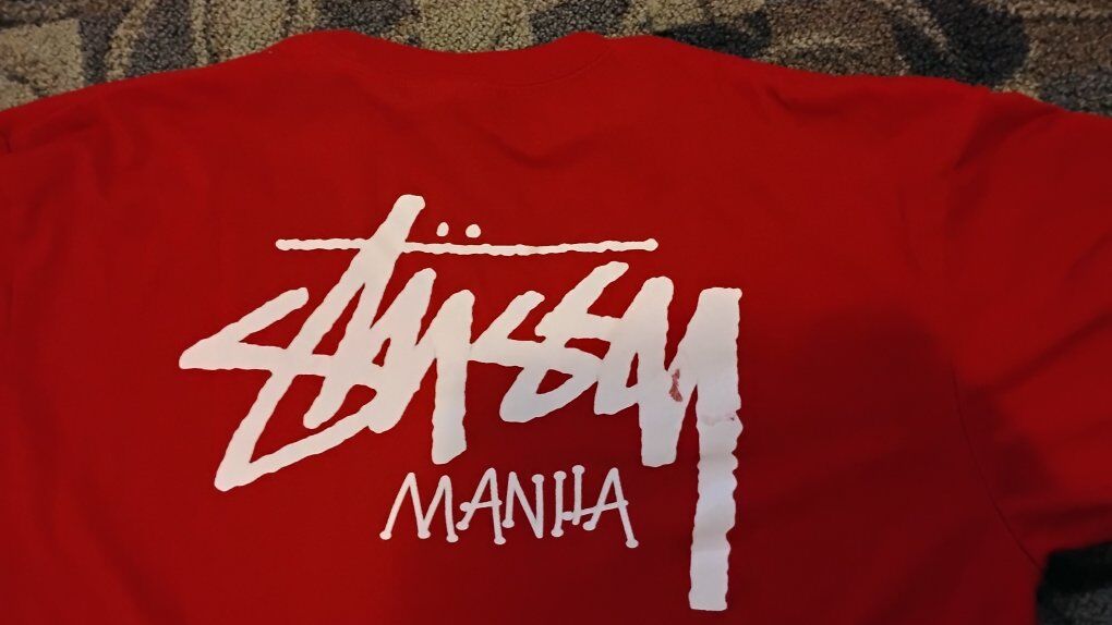 Have this Stussy Manha T-shirt no it is not the real one as you can see in the pictures it is an XL and the back is missing a little bit of the white of the stussy. But overall it is a good tshirt