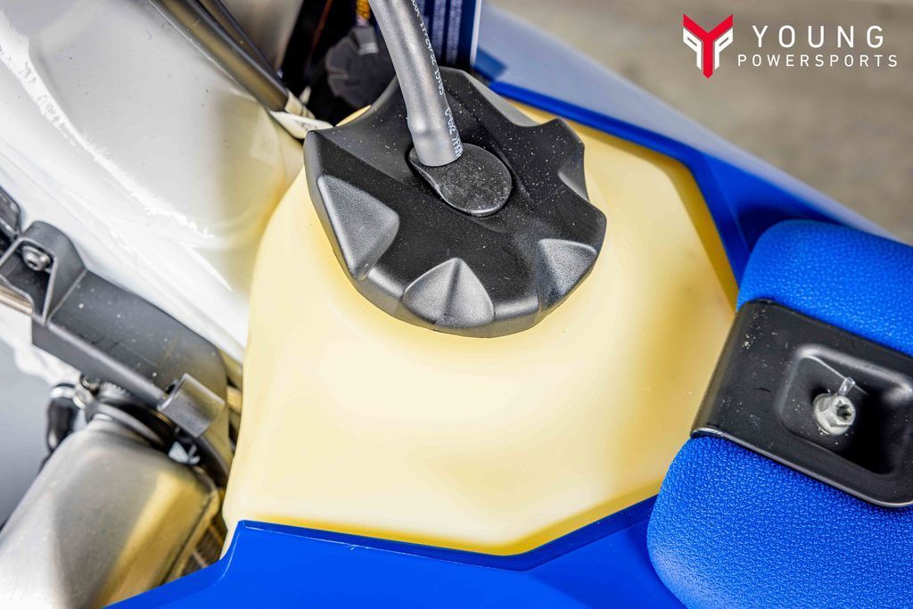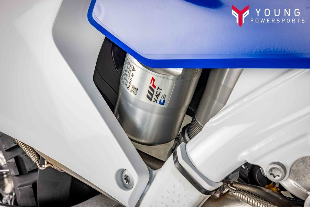 The proven chromium molybdenum steel frame is refined for 2024. A new shock mounting, which is no longer connected to the main tube, significantly improves the anti-squat behavior of the chassis. With optimized wall thickness in high-stress areas improving reliability, the frame continues to offer advanced geometries and flex characteristics aimed at providing unparalleled rider feedback, energy absorption, and straight-line stability. The frame is complete with a premium metallic blue powder coating with redesigned standard frame protectors offering improved grip in all conditions. Additionally, the redesigned and robust skid plate offers exceptional frame and engine protection.