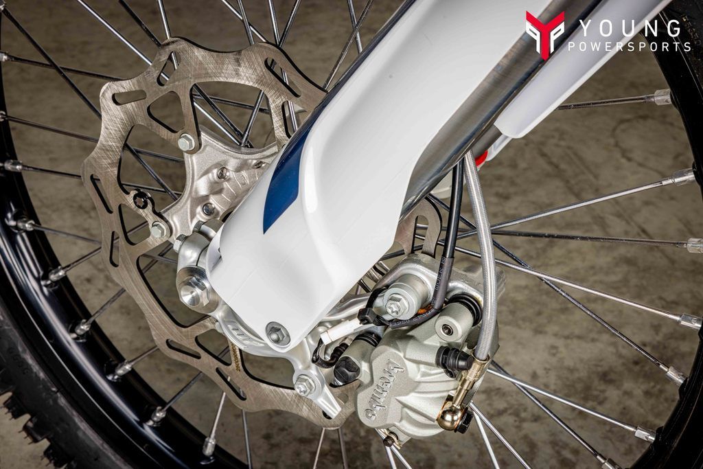 Powered by a lightweight engine fuelled by Throttle Body Injection (TBI), the TE 150 produces impressive torque for a small-capacity 2-stroke. Expertly assembled with the latest technical innovations to deliver best-in-class performance, this versatile machine is highly capable in the hands of both beginners and experienced racers alike. WP XACT suspension, combined with a perfectly balanced chassis, inspires confidence throughout every ride or special test. Completing the build of this popular model are the Brembo clutch and brake systems, a combined start/stop switch, Michelin tyres, and distinctive Swedish-inspired graphics.