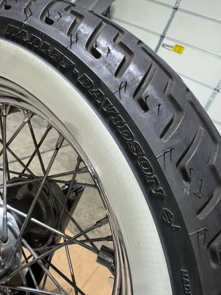 Factory 16x3 40 spoke wheel from 2013 Heritage, nonABS model. Single disc hub. 25mm bearings and inner tube have 7000 miles also. Bearing can be changed to suit ABS model or converted to work with 3/4” or 1” axle.
