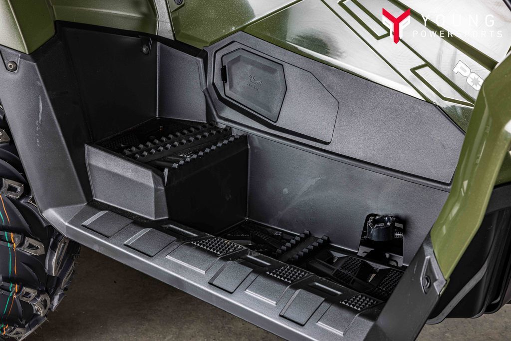 A 5-gallon front storage bin provides more space for stowing tools and gear. Add accessory racks and grips to optimize the space for your use.