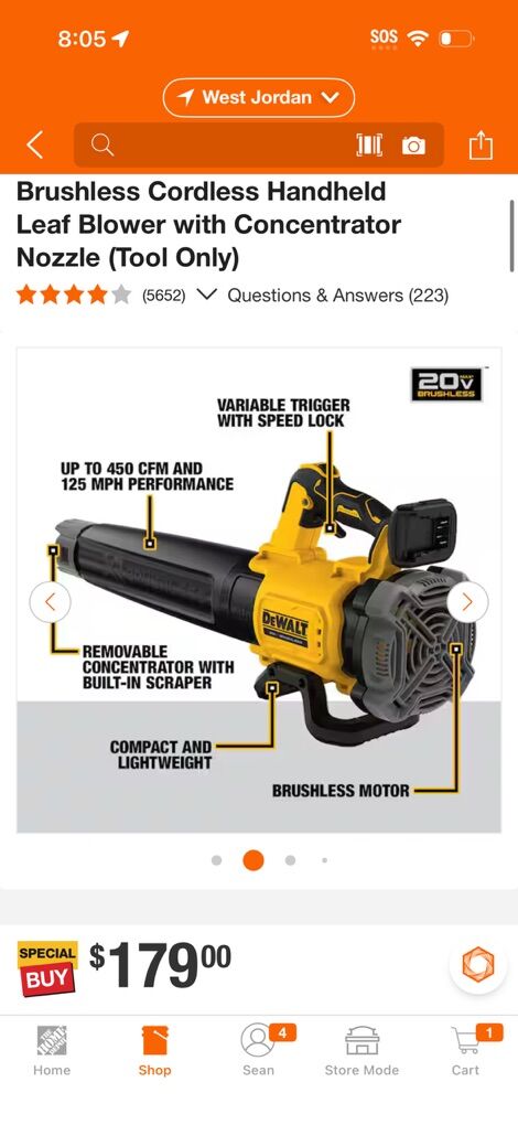 ZelleBrand new Dewalt 20v brushless blower. Still in box. Blows up to 125 mph. Works great and light and convenient. Sales for $179 at Home Depot. Model DCBL722B Tool only. No battery or charger. Can add charger for $10. Have a variety of batteries