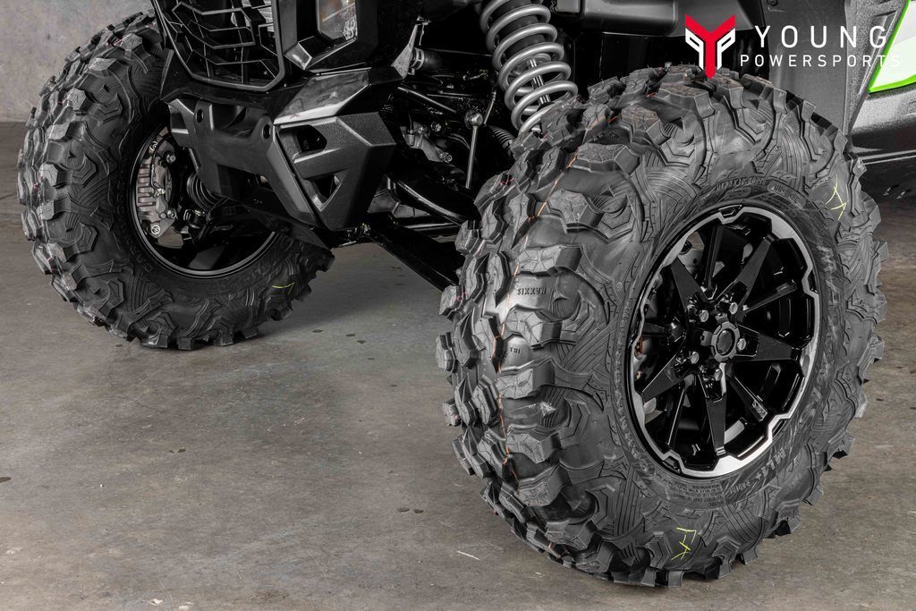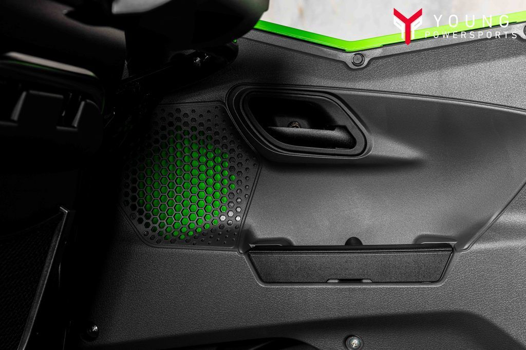 As the new Teryx® side x side flagship, it was important that the Teryx4/5 H2 side x sides look the part. The sleek, low-profile design, wide stance, and aggressive front-end are complemented by luxuriously painted Lime Green bodywork—a head-turning combination that conveys both its high level of performance as well as its high-grade build.