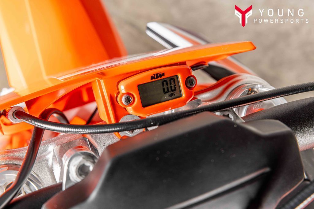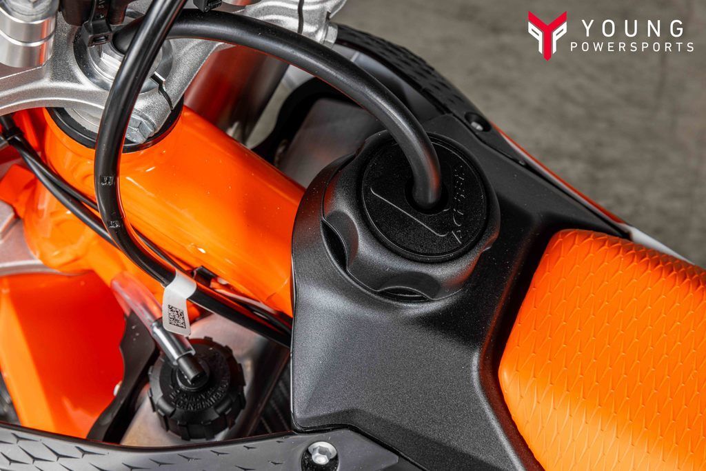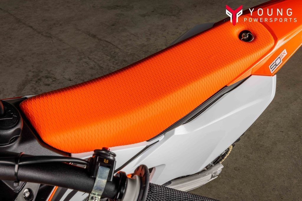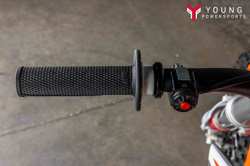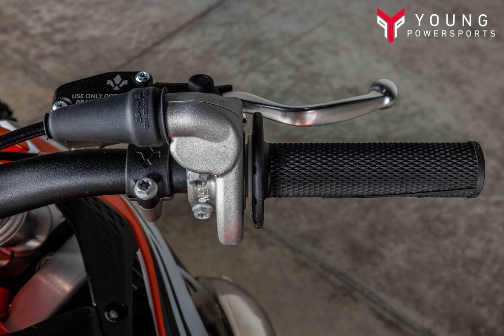 Different adjustability options were built into the KTM 50 SX construction using scientific statistical data and young racers' input data. Finding the right fit for your little ripper is easy thanks to height-adjustable suspension, handlebar position, subframe, and bodywork, taking the seat height from a low setting of 24.9 in (634 mm) to a taller setting of 26.8 in (682 mm).