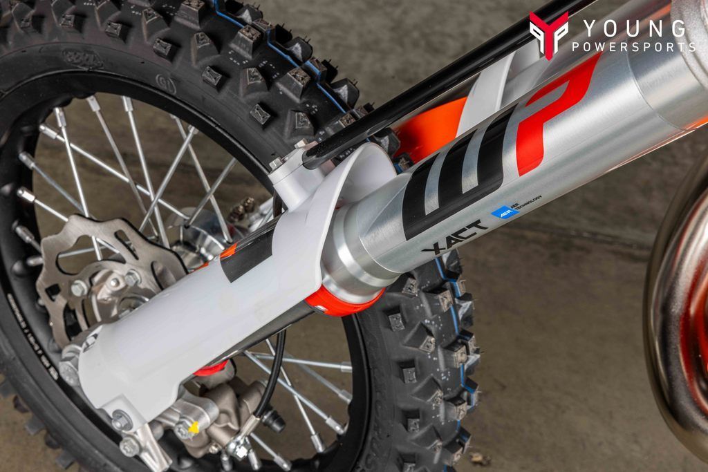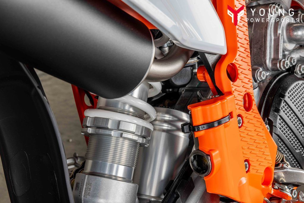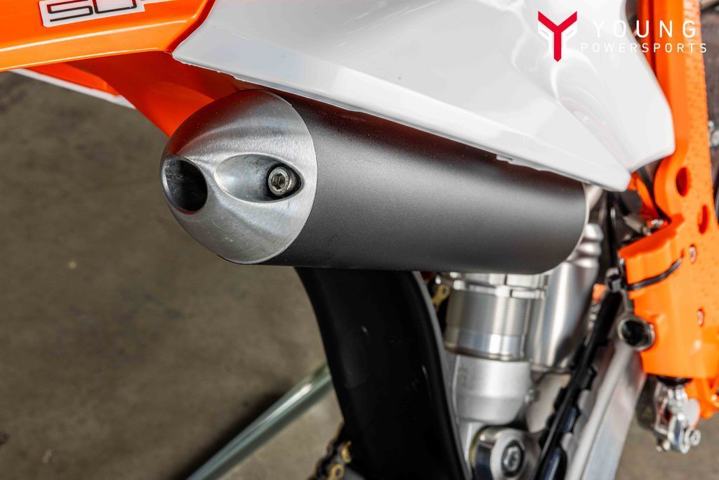 The exhaust system benefits from the same manufacturing process as the full-size 2-stroke KTM SX range, with improved overall quality and performance. This has resulted in massive progressions in thermodynamics. Moreover, tighter sealing of the silencer end cap and a rubber between the header pipe and silencer adds another level of quality to the exhaust system. The silencer comes with a black anodized finish and a signature 'Braaaaap!'. Modifications include a flange gasket for better durability and the exhaust valve ventilation has been redesigned. It is more 'bulletproof' thanks to extra efficient and locally sourced manufacturing at KTM HQ.