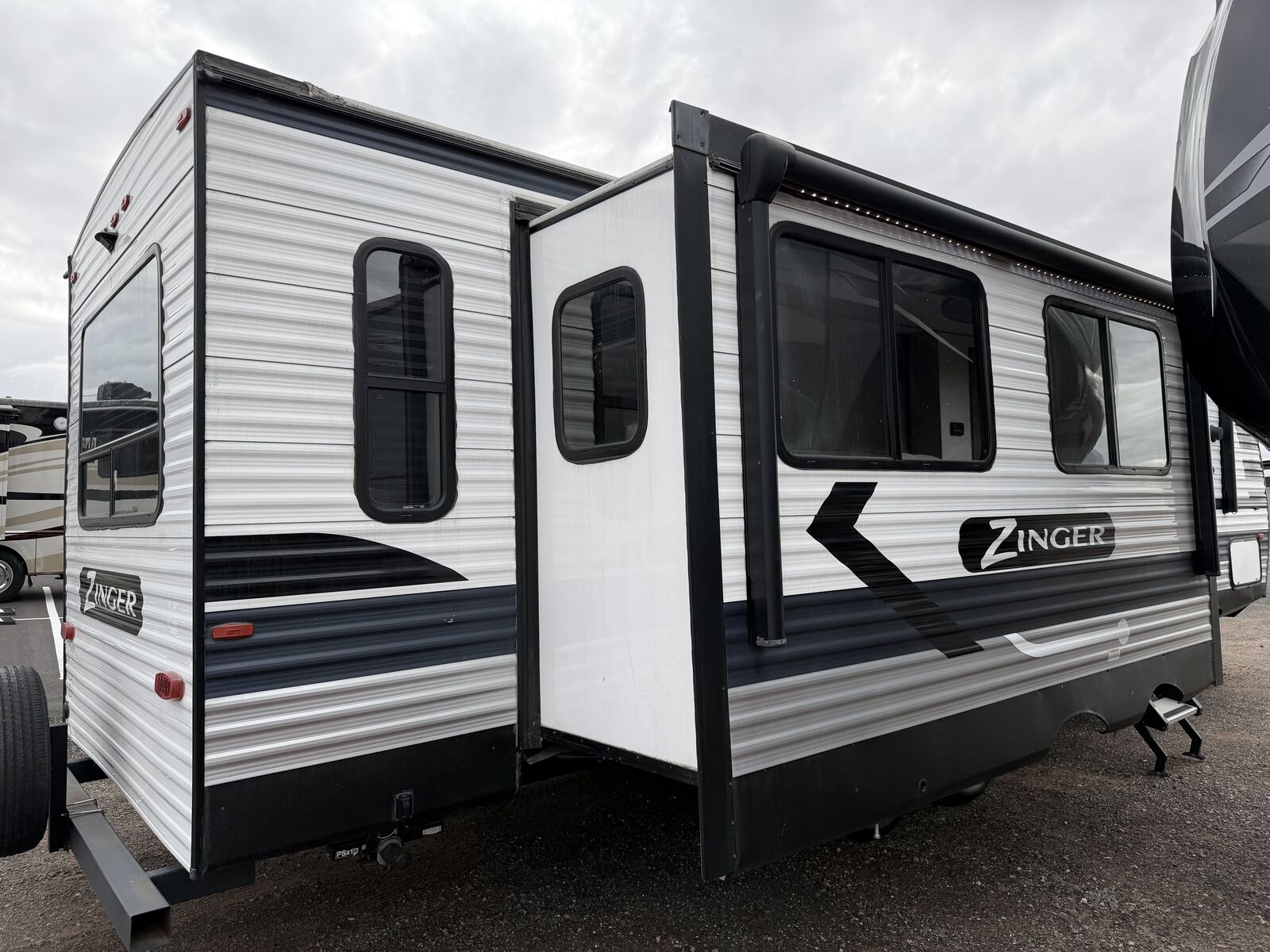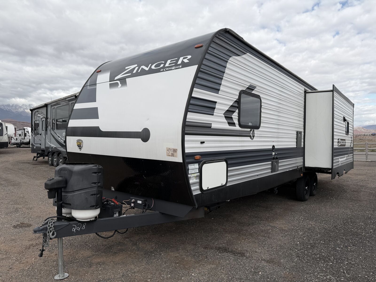 GooglePayThis is a really nice unit with some minor metal damage on the curbside rear. it has been fixed but is slightly noticable. here are the specs: The 2022 Crossroads RV Zinger 292RE is a travel trailer with a dry weight of approximately 7,550 lbs and a length of 33 ft 8 in. Key features include a rear living area, two slide-outs, a front bedroom with an RV queen bed, and a 12-volt, 10 cu. ft. refrigerator.