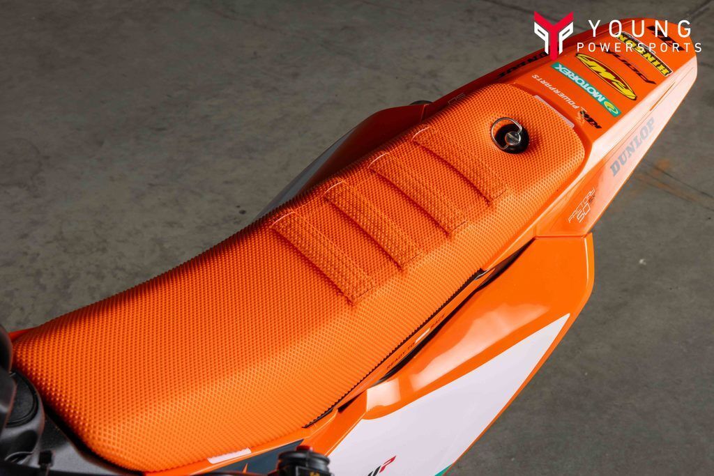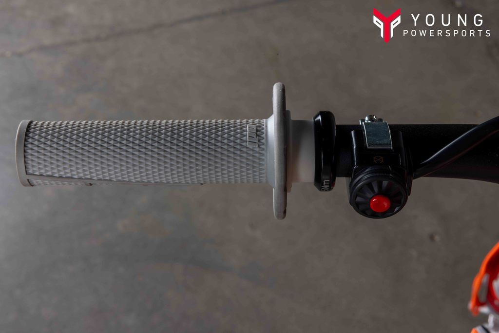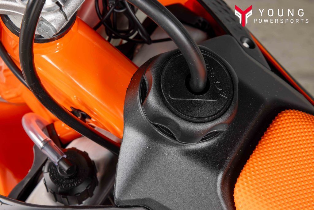 The KTM 50 SX FACTORY EDITION is designed to grow with the little racer, by being height adjustable. Different options were built into the KTM 50 SX construction using scientific statistical data and mannequins. So, finding the right fit for your junior ripper is ultra easy, thanks to height adjustable suspension, handlebar position, subframe, and bodywork, taking the seat height from a low setting of 24.9 in (634 mm) to a taller setting of 26.8 in (682 mm).