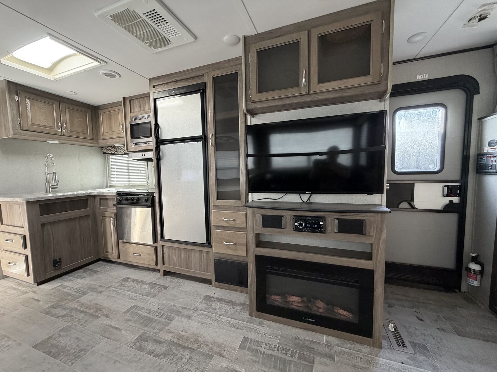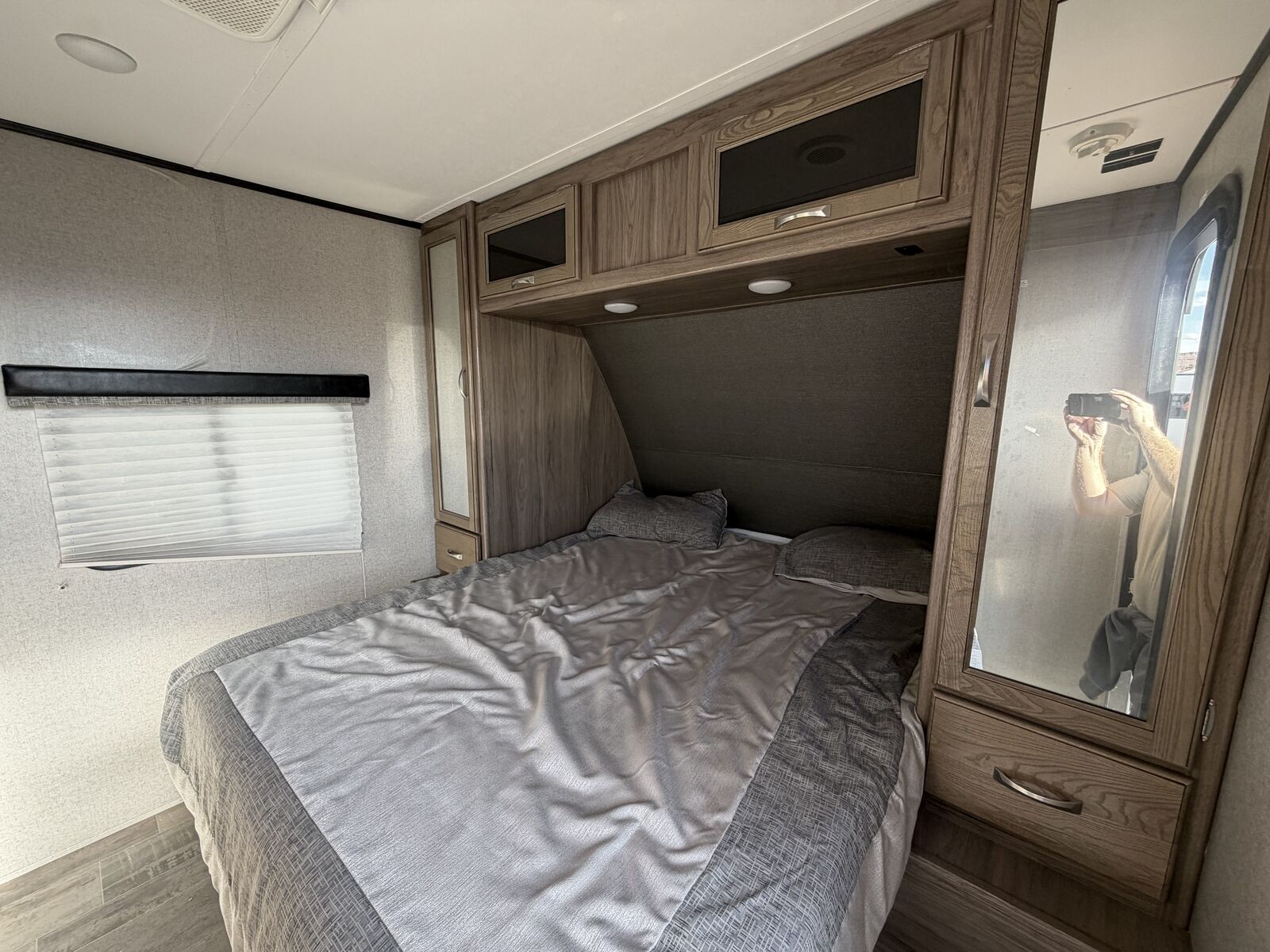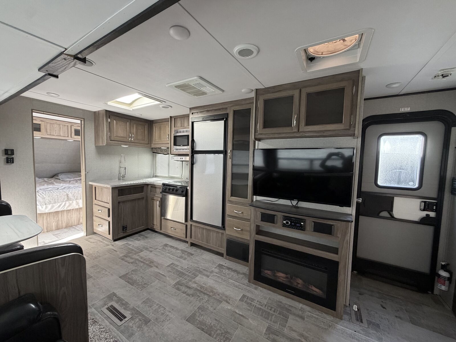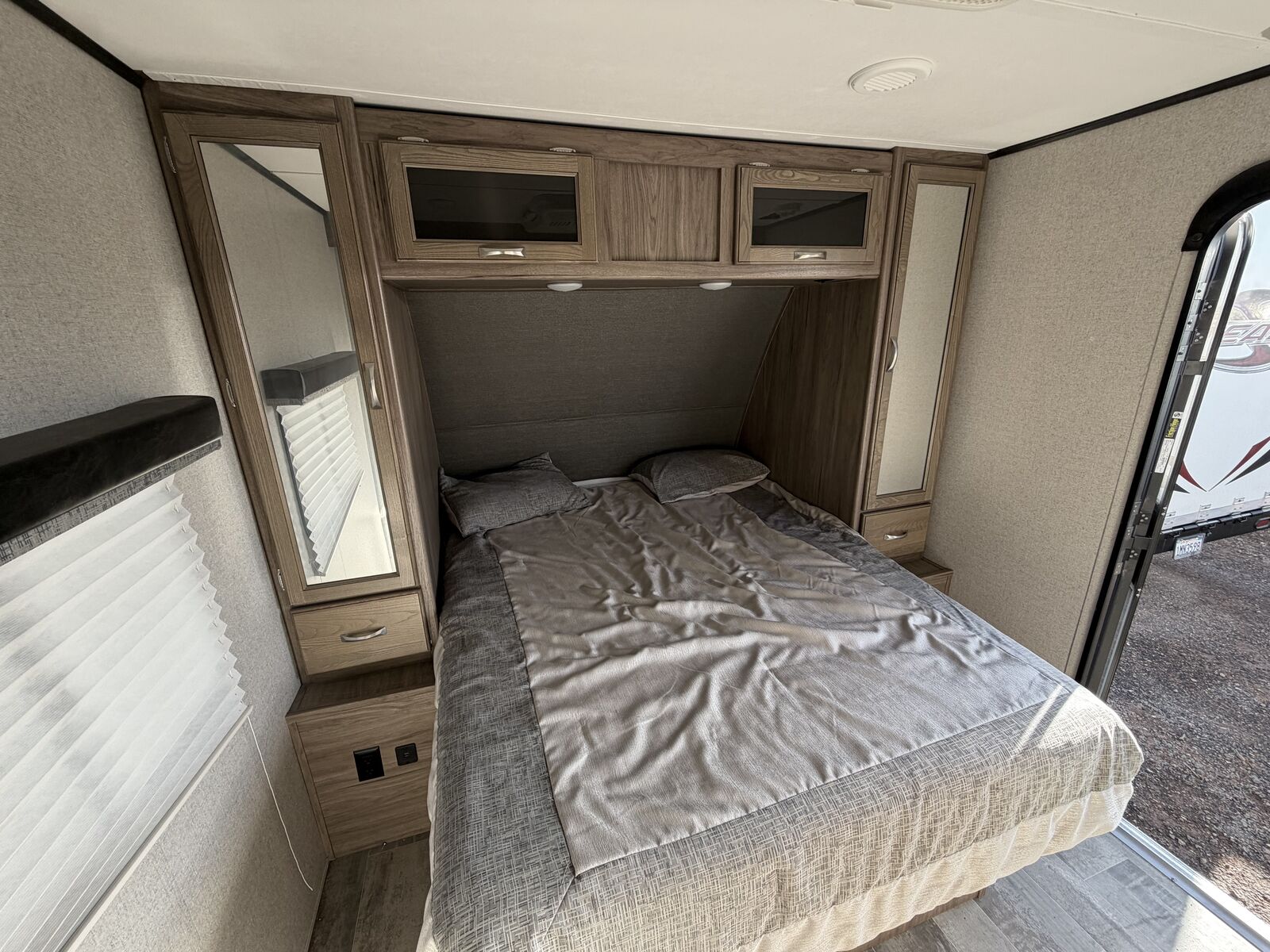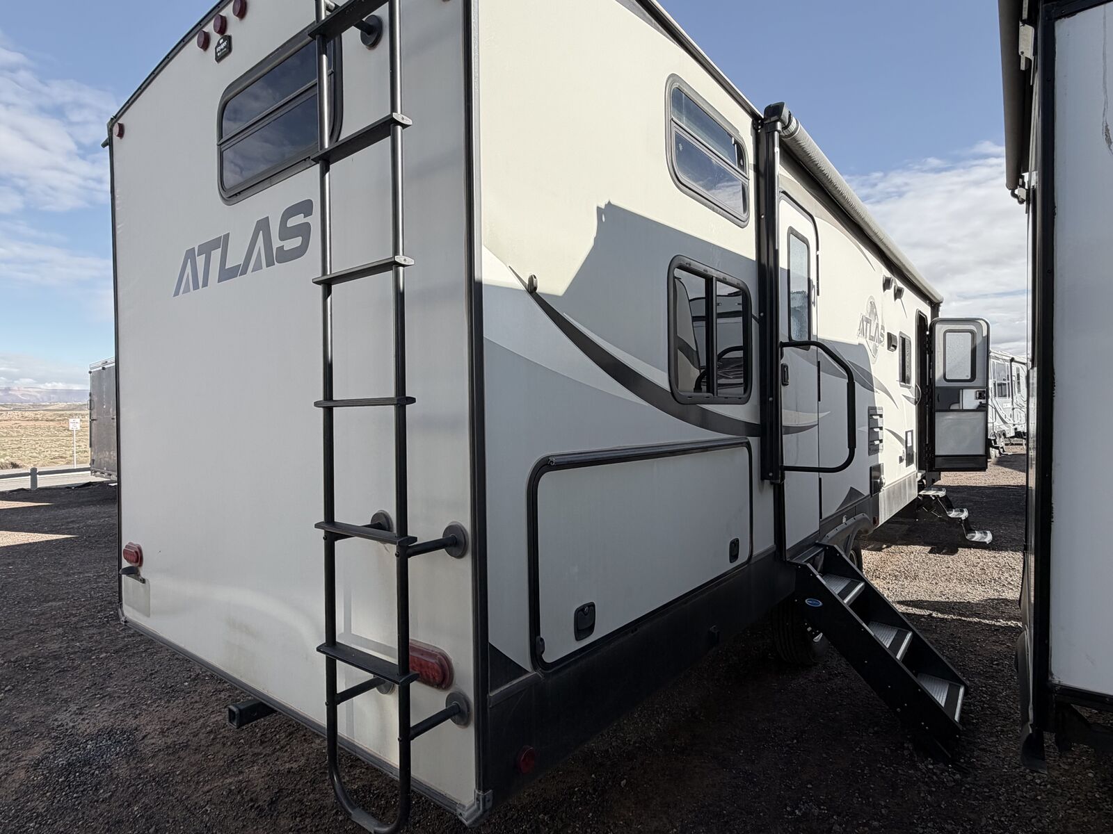 GooglePayAtlas 2922BH is a bunkhouse travel trailer, around 33.3 feet long, weighing about 7,083 lbs dry, featuring a front queen bedroom, rear double bunks, a living area with a slide-out, a full kitchen, bath, and an exterior kitchen, designed for family camping with features like WiFi prep, power awning, and outdoor entertainment.