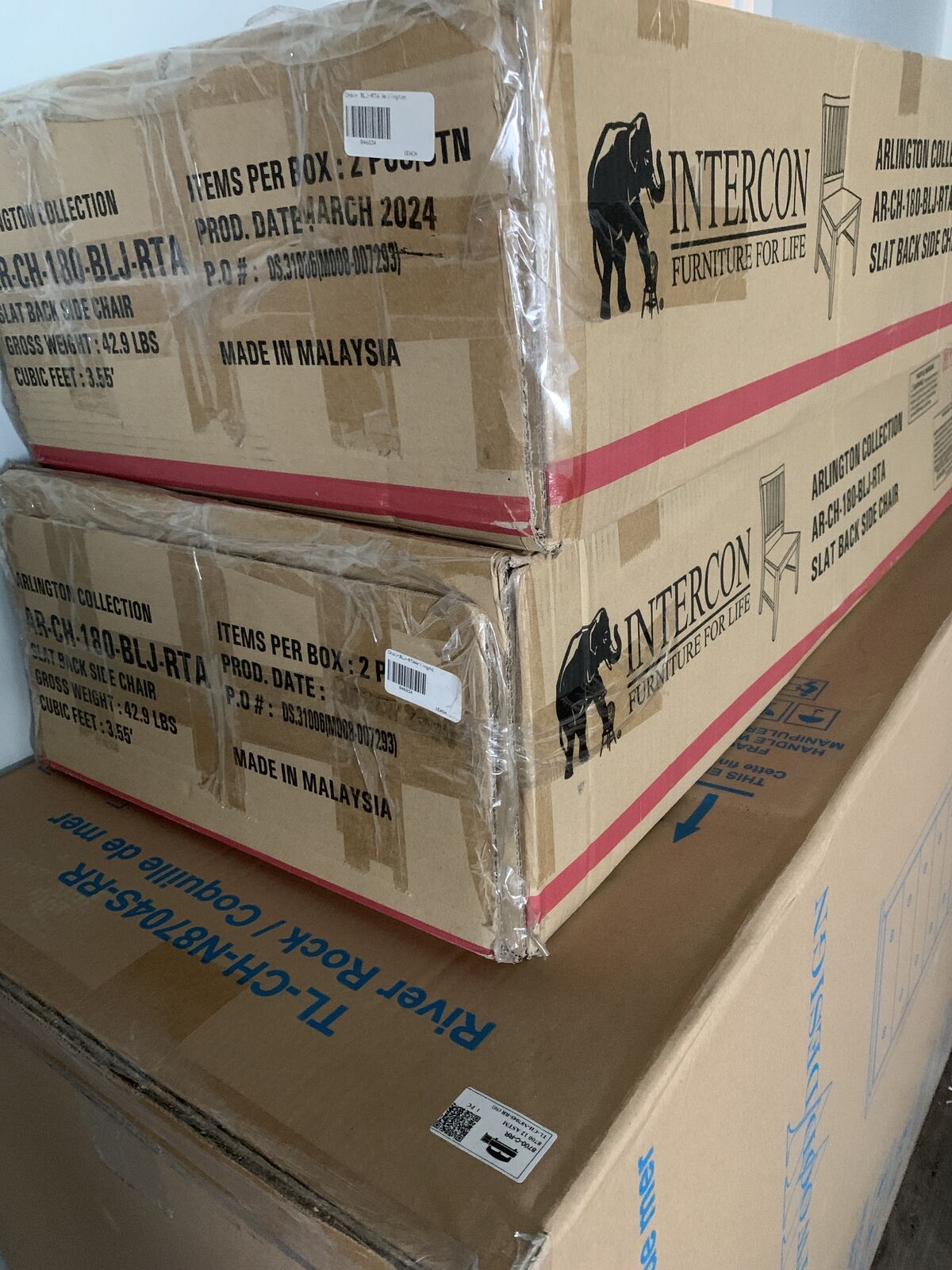 Intercon furniture real wood Set of 4 brand new in box never opened Kitchen chairs. Pet free smoke free home . Must haul yourself asking $60