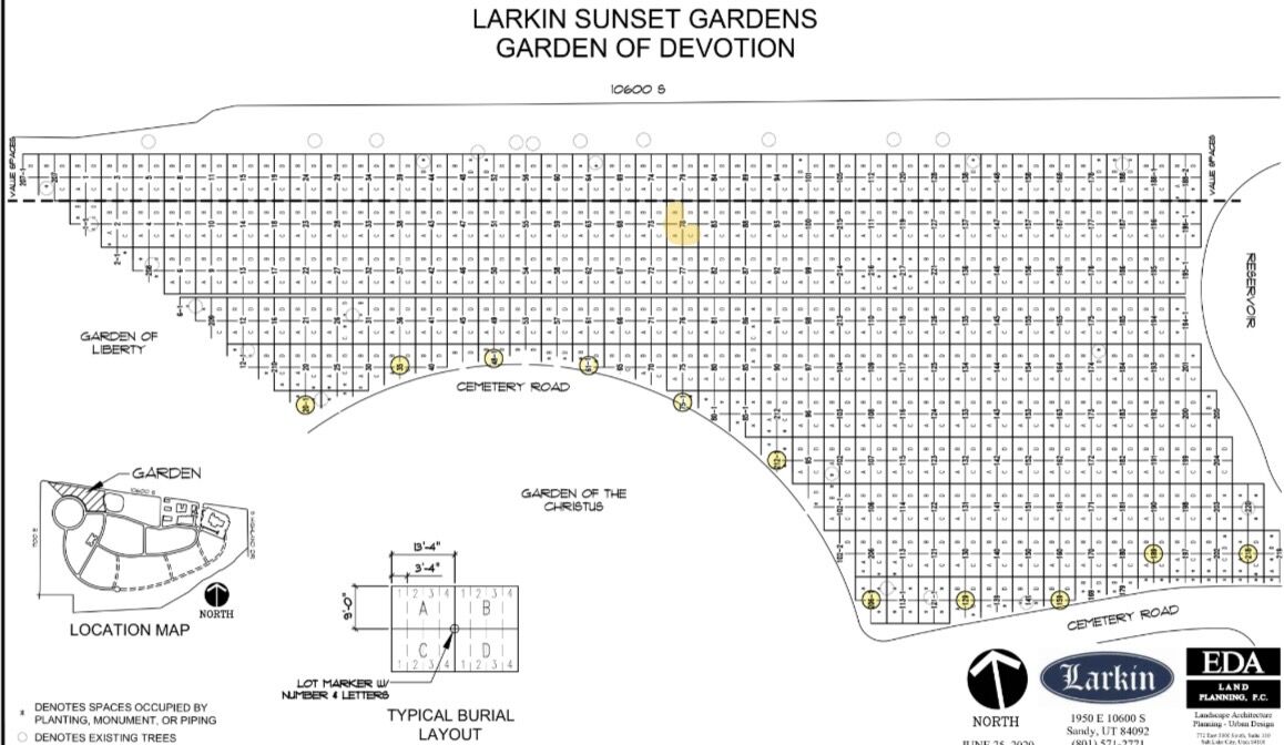 We have 3 Burial spaces (Flat Marker's only) available for sale. They are at the Larkin Sunset Gardens - Garden of Devotion Section 78 Spaces A, B, and C Close to the road for easy access from a vehicle. Current Retail here is $3,445 each. If you purchase all three plots it will be discounted heavily at a total of $6,000 now $5600.00 for three plots. If purchasing one or two it will be $2400.00 for each plot.