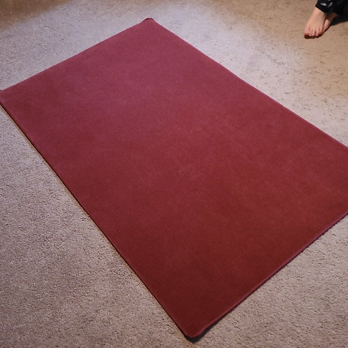 Red, low pile rug. The corners / edges have wear. approximately 3x5 Clean