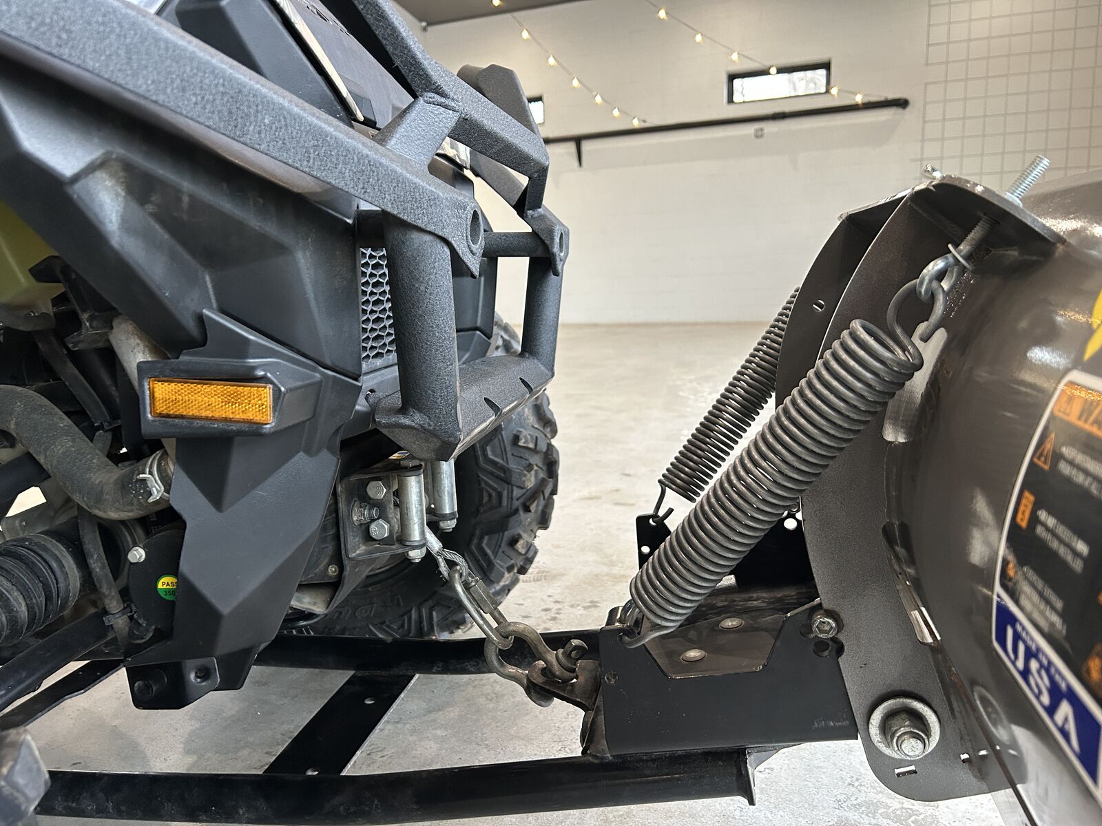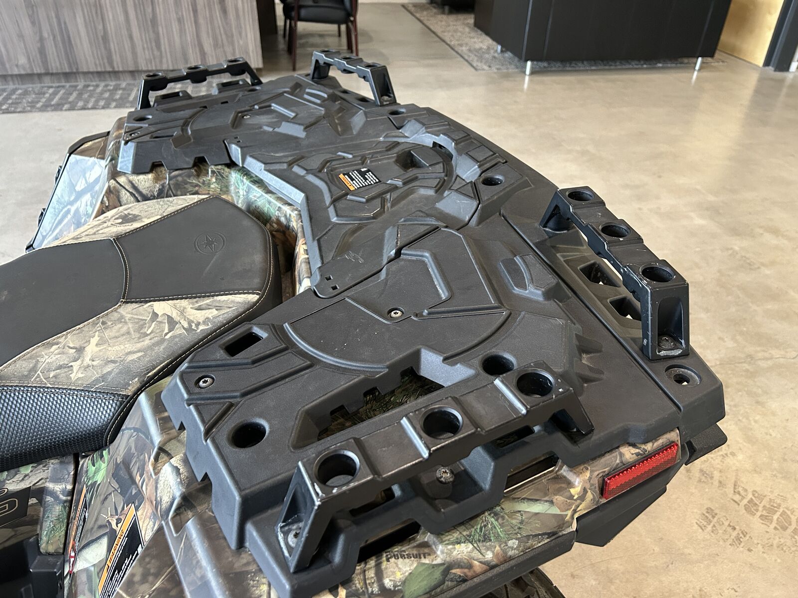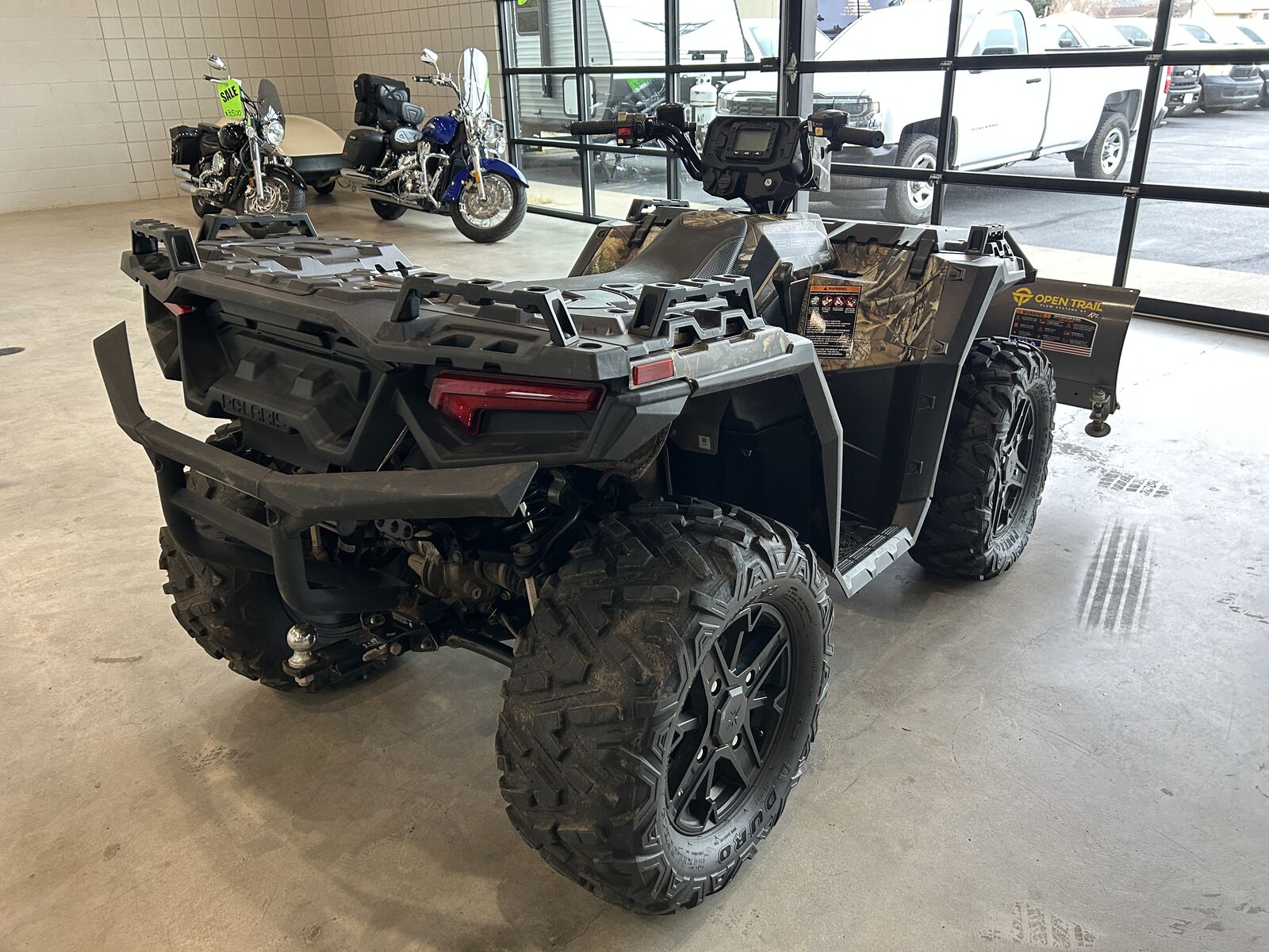 Calling All Outdoorsman! Come see this 2023 Polaris Sportsman 850 Ultimate Trail. Equipped with Polaris’ Pursuit Camo and features a 78 HP ProStar 4-Stroke SOHC Single Cylinder 850cc engine, One Touch On-Demand AWD/2WD, Multi-Select EPS, Electronic Fuel Injection (EFI), One Touch On-Demand AWD/2WD, Automatic PVT with P/R/N/L/H, Engine Braking System (EBS) & Active Descent Control (ADC), and comes equipped with a 3500lb winch, front/rear bumpers, 27" Duro tires on 14" aluminum wheels, and LED lighting. Key specs include 12" ground clearance, 1500 lb towing, 575 lb payload, and 120/240 lb rack capacity, offering enhanced capability over standard models with its trail-focused enhancements. Has an Open Trails plow system by KFI. 835.5 Miles. You’ll be the talk of camp fire with this beauty!